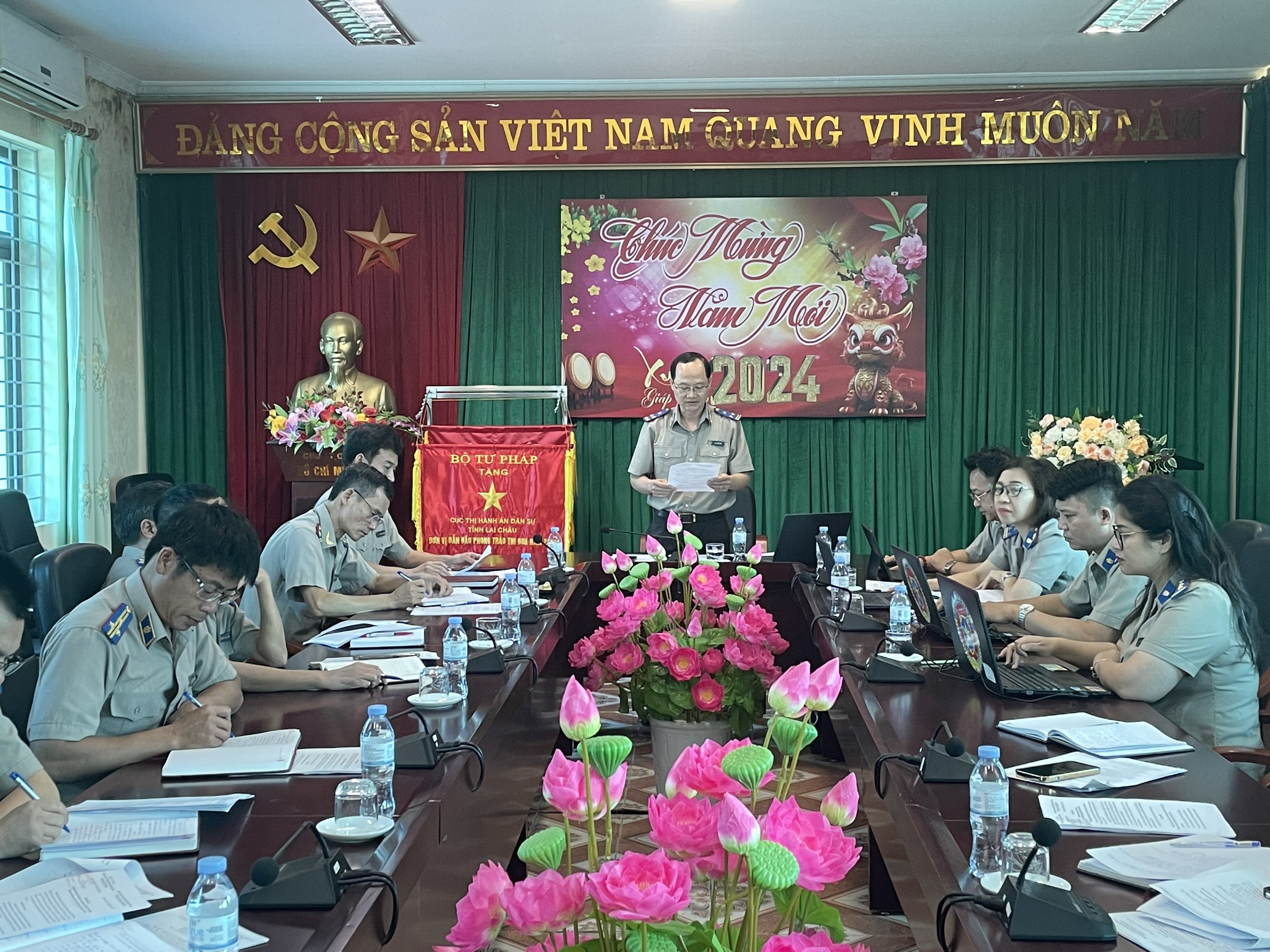 Thực hiện Quyết định kiểm tra số 316/QĐ-TCTHADS ngày 27/3/2024 của Tổng Cục trưởng Tổng cục Thi hành án dân sự (THADS), Kế hoạch kiểm tra số 1212/TCTHADS-ĐKTr ngày 01/4/2024, của Đoàn kiểm tra, từ ngày 23/4 đến ngày 25/4/2024, Đoàn kiểm tra của Tổng cục THADS do đồng chí Lại Thế Anh – Phó Chánh Văn phòng Tổng cục THADS làm Trưởng đoàn đã tiến hành công bố Quyết định kiểm tra theo Kế hoạch tại Cục THADS tỉnh Lai Châu.