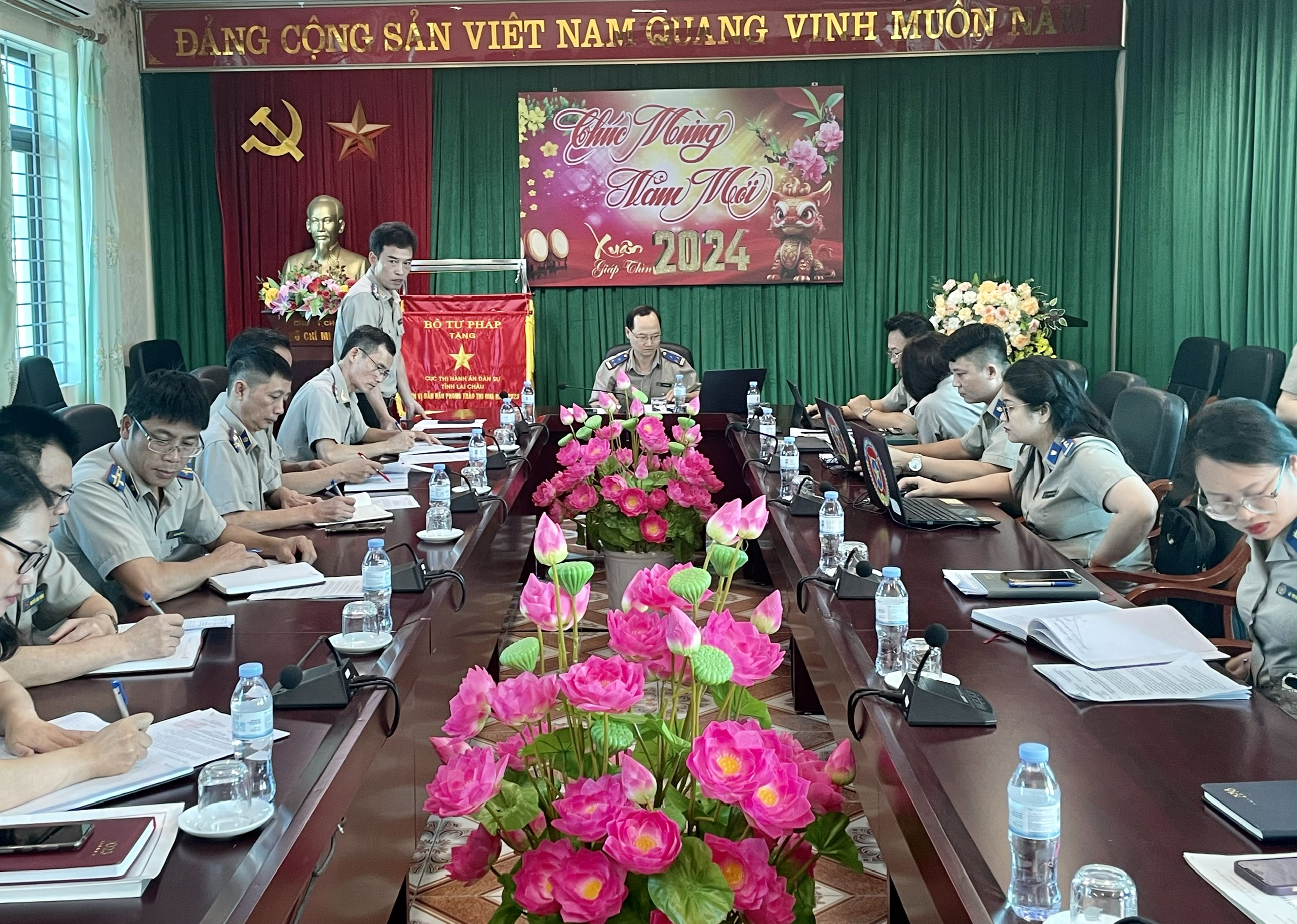 Tại buổi làm việc, Đoàn kiểm tra đã nghe đại diện Cục THADS tỉnh Lai Châu trình bày báo cáo về công tác văn phòng từ ngày 01/10/2022 đến ngày 31/3/2024, báo cáo thống kê của Cục từ ngày 01/10/2022 đến ngày 31/3/2024. Trên cơ sở báo cáo của Cục, các thành viên Đoàn kiểm tra đã cùng trao đổi, có ý kiến làm rõ thêm về kết quả thực hiện nhiệm vụ của Cục trong kỳ kiểm tra.