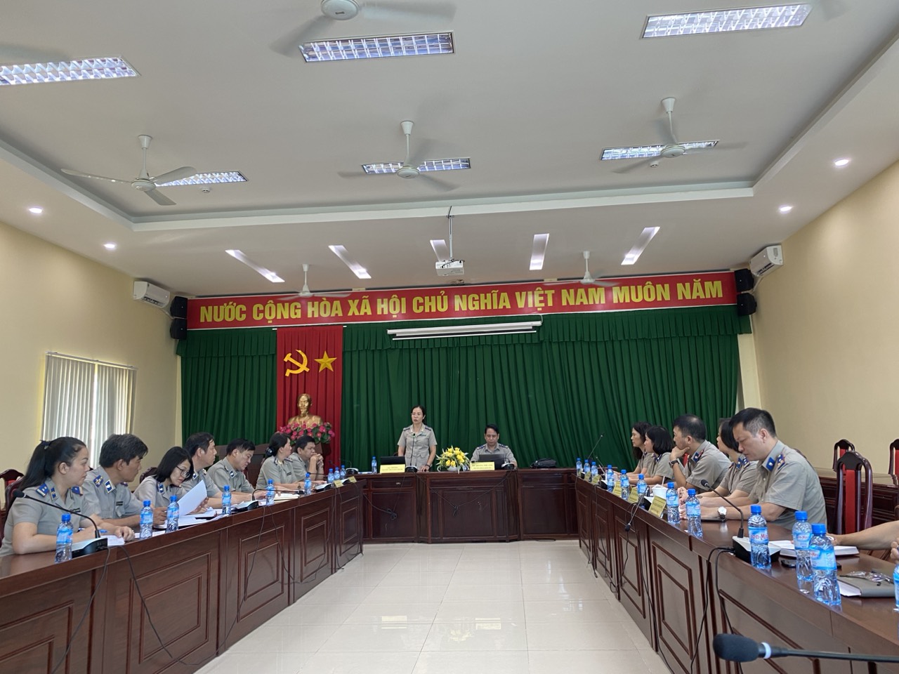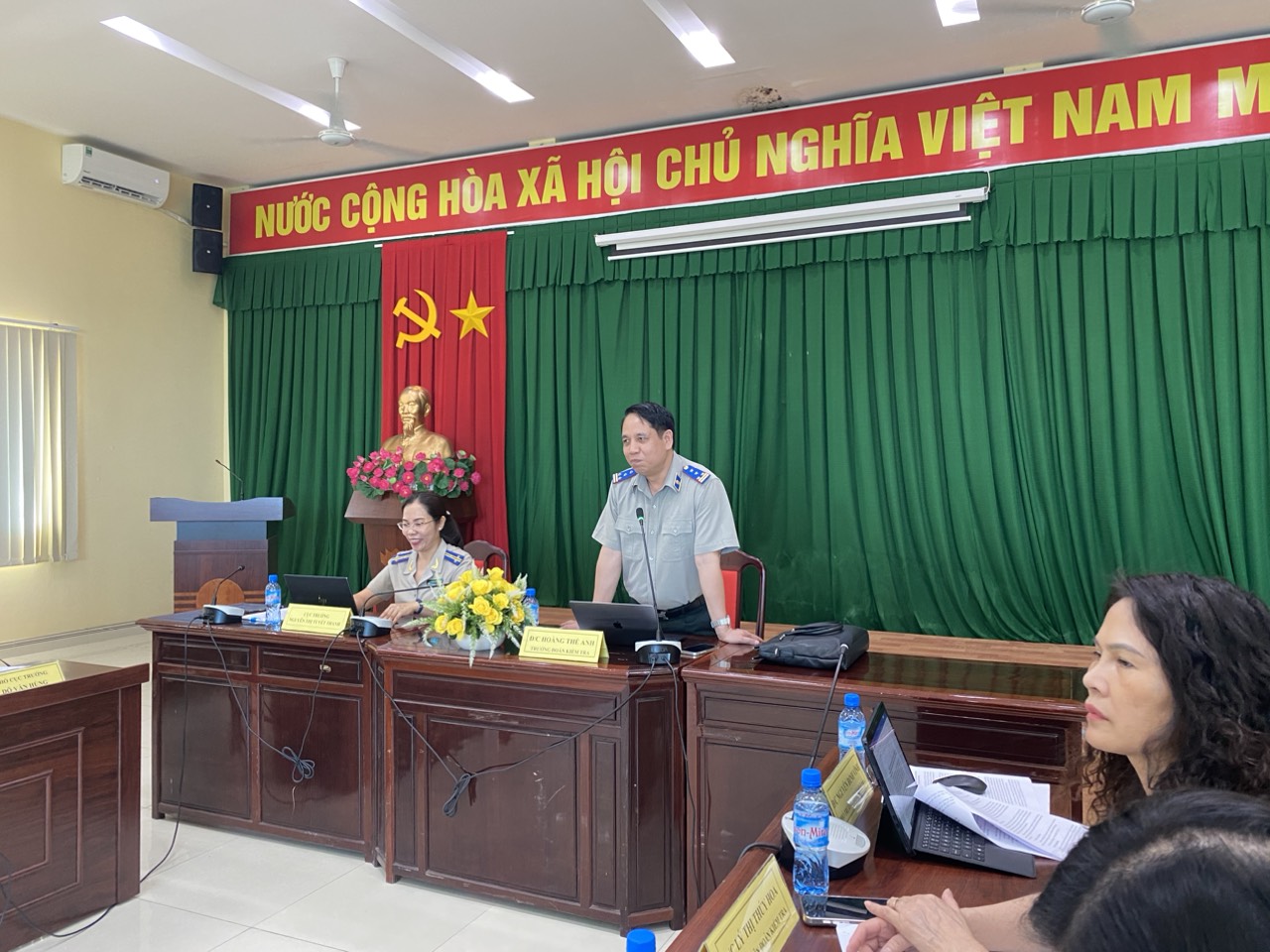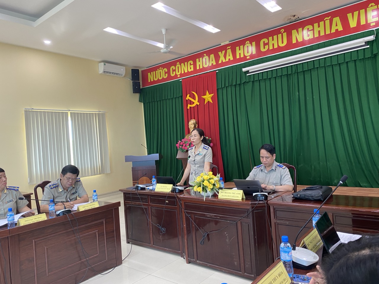 Thực hiện Quyết định kiểm tra số 621/QĐ-TCTHADS ngày 23/5/2024 của Tổng Cục trưởng Tổng cục Thi hành án dân sự (THADS), Kế hoạch kiểm tra số 1979/KH-TCTHADS-ĐKTr ngày 23/5/2024, của Đoàn kiểm tra, từ ngày 03/6 đến hết ngày 07/6/2024, Đoàn kiểm tra của Tổng cục THADS do đồng chí Hoàng Thế Anh – Vụ trưởng Vụ Nghiệp vụ 3, Tổng cục THADS làm Trưởng đoàn đã tiến hành công bố Quyết định kiểm tra theo Kế hoạch tại Cục THADS tỉnh Bình Dương.