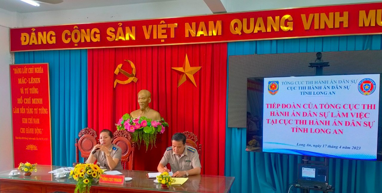 Sau khi nghe Cục THADS tỉnh Long An báo cáo kết quả công tác THADS 06 tháng đầu năm và phương hướng, giải pháp 06 tháng cuối năm 2023 của các cơ quan THADS tỉnh Long An, đồng chí Phó Tổng cục trưởng yêu cầu Lãnh đạo một số đơn vị Chi cục THADS trực thuộc (Chi cục THADS huyện Đức Huệ, Chi cục THADS huyện Tân Thạnh) có kết quả công tác THADS 06 tháng đầu năm về tiền và việc còn thấp trực tiếp báo cáo, giải trình, đánh giá các tồn tại, hạn chế, từ đó làm rõ nguyên nhân chủ quan, khách quan và đưa ra các giải pháp khắc phục tồn tại, hạn chế, tháo gỡ khó khăn, vướng mắc, phấn đấu hoàn thành chỉ tiêu, nhiệm vụ được giao trong thời gian còn lại của năm công tác; đồng thời, đề nghị một số Chi cục THADS đạt kết quả cao trong 06 tháng đầu năm (như Chi cục THADS huyện Đức Hòa) chia sẻ kinh nghiệm hoàn thành chỉ tiêu, nhiệm vụ công tác và các giải pháp cần tập trung trong 06 tháng cuối năm. Đối với các mặt công tác khác tại Cục THADS tỉnh Long An, đồng chí Phó Tổng cục trưởng cũng yêu cầu Trưởng phòng chuyên môn báo cáo những khó khăn, vướng mắc và đề xuất giải pháp để thực hiện tốt nhiệm vụ trong 06 tháng cuối năm 2023.