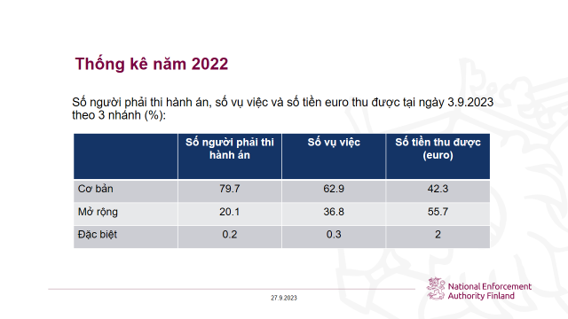 Số liệu thống kê thi hành án Phần Lan năm 2022:
