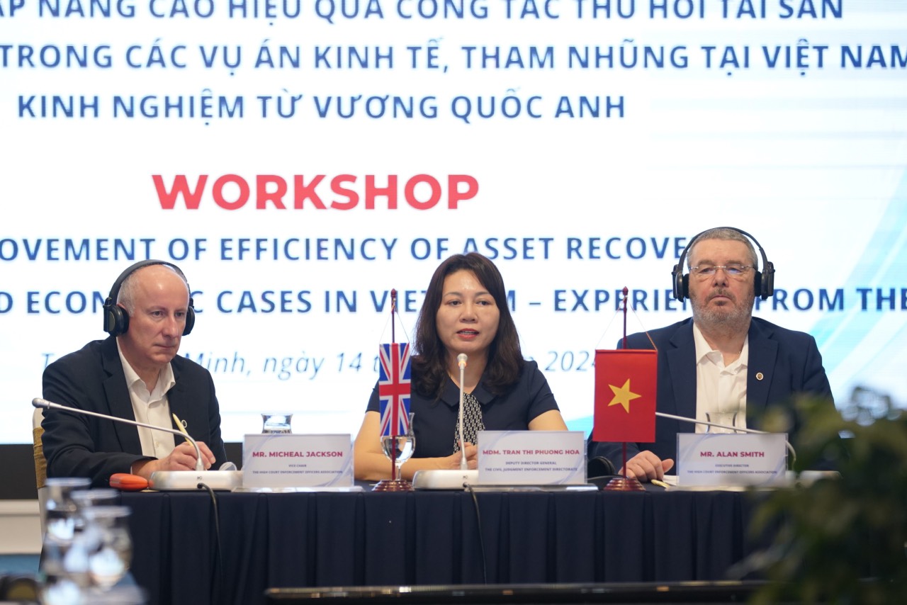 Phát biểu tại Hội thảo, Thứ trưởng Mai Lương Khôi nhấn mạnh, trong bối cảnh Bộ Tư pháp Việt Nam đang triển khai thực hiện Nghị quyết số 27-NQ/TW của Ban Chấp hành Trung ương với mục tiêu hoàn thiện mô hình tổ chức, quy trình thi hành án nhằm nâng cao hiệu quả, rút ngắn thời gian, giảm thiểu chi phí thi hành án dân sự (THADS); bên cạnh đó một trong những nhiệm vụ cơ bản hiện nay của công tác THADS tại Việt Nam là thu hồi tài sản trong các vụ án tham nhũng, kinh tế được Đảng, Nhà nước Việt Nam giao cụ thể tại Văn kiện Đại hội Đảng lần thứ XIII và Chỉ thị số 04-CT/TW của Ban Bí thư. Bộ Tư pháp hiện đang giao Tổng cục THADS nghiên cứu hoàn thiện các giải pháp nâng cao hiệu quả công tác thu hồi tài sản cho Nhà nước trong các vụ án tham nhũng, kinh tế.