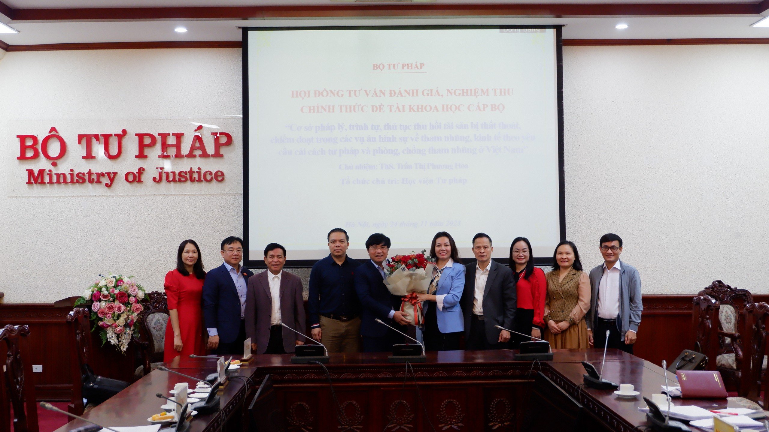 Nghiệm thu chính thức Đề tài khoa học cấp Bộ “Cơ sở pháp lý, trình tự, thủ tục thu hồi tài sản bị thất thoát, chiếm đoạt trong các vụ án hình sự về tham nhũng, kinh tế theo yêu cầu cải cách Tư pháp và phòng chống tham nhũng ở Việt Nam”