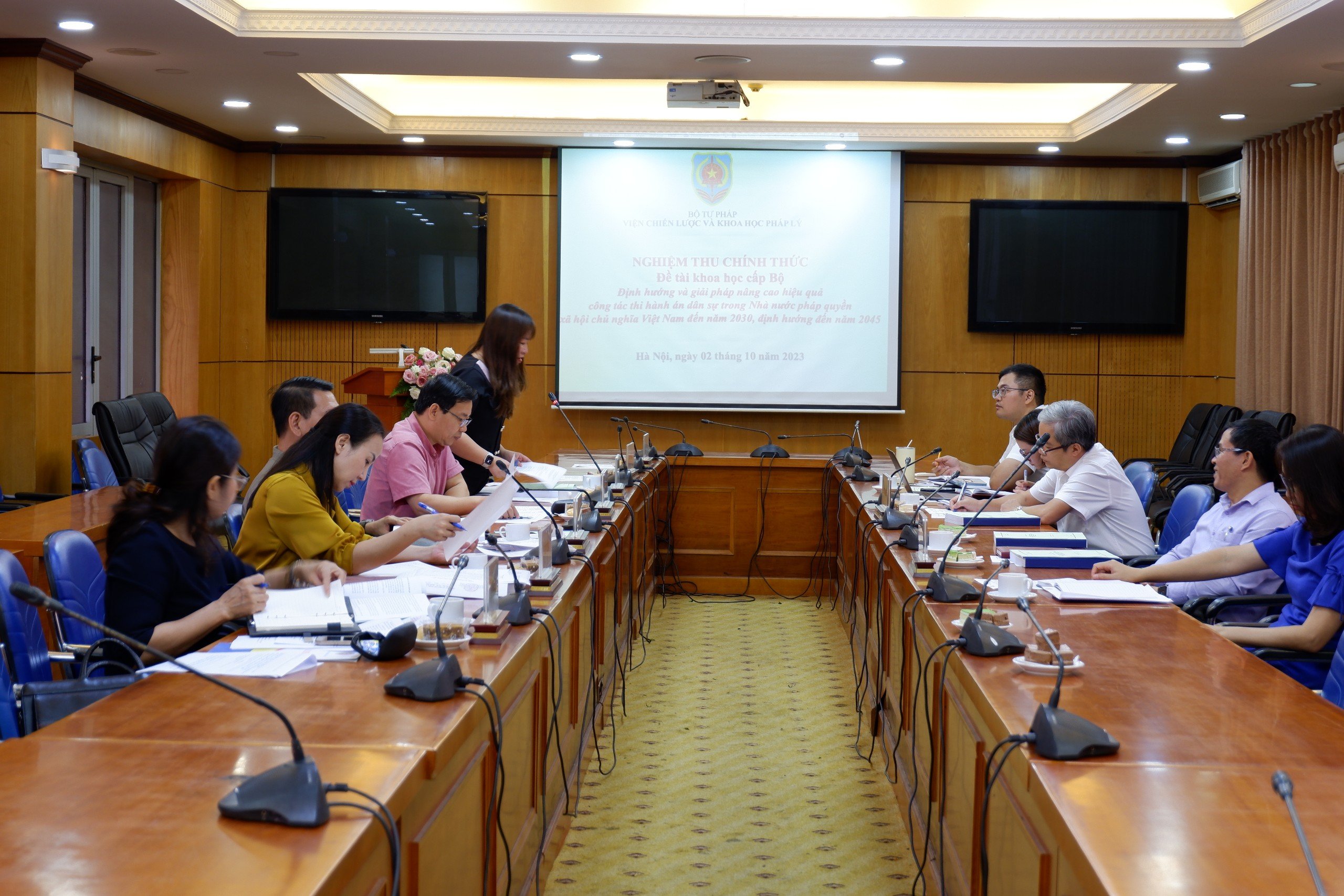 Nghiệm thu chính thức Đề tài Nghiên cứu khoa học cấp Bộ: Định hướng và giải pháp nâng cao hiệu quả công tác Thi hành án dân sự trong Nhà nước pháp quyền xã hội chủ nghĩa Việt Nam đến năm 2030, định hướng đến năm 2045