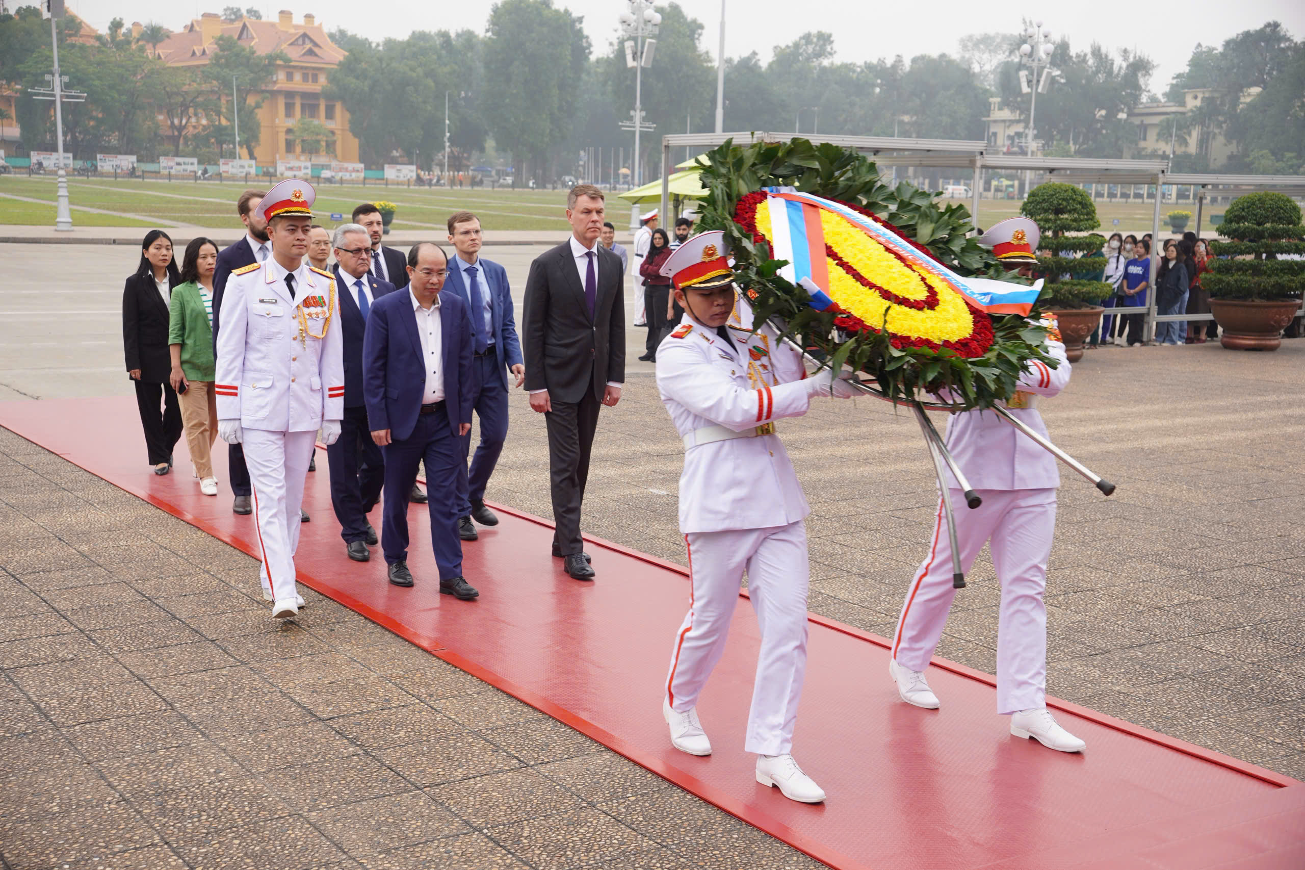 Trong khuôn khổ chuyến thăm và làm việc tại Việt Nam từ ngày 02-6/12/2025, sáng ngày 03/12, Đoàn công tác Cơ quan Thi hành án Liên bang Nga do ông Dmitry Aristov - Giám đốc Cơ quan Thi hành án Liên bang Nga làm Trưởng đoàn đã tới dâng hoa, vào Lăng viếng Chủ tịch Hồ Chí Minh, bày tỏ lòng kính trọng sâu sắc đối với Lãnh tụ vĩ đại của nhân dân Việt Nam.