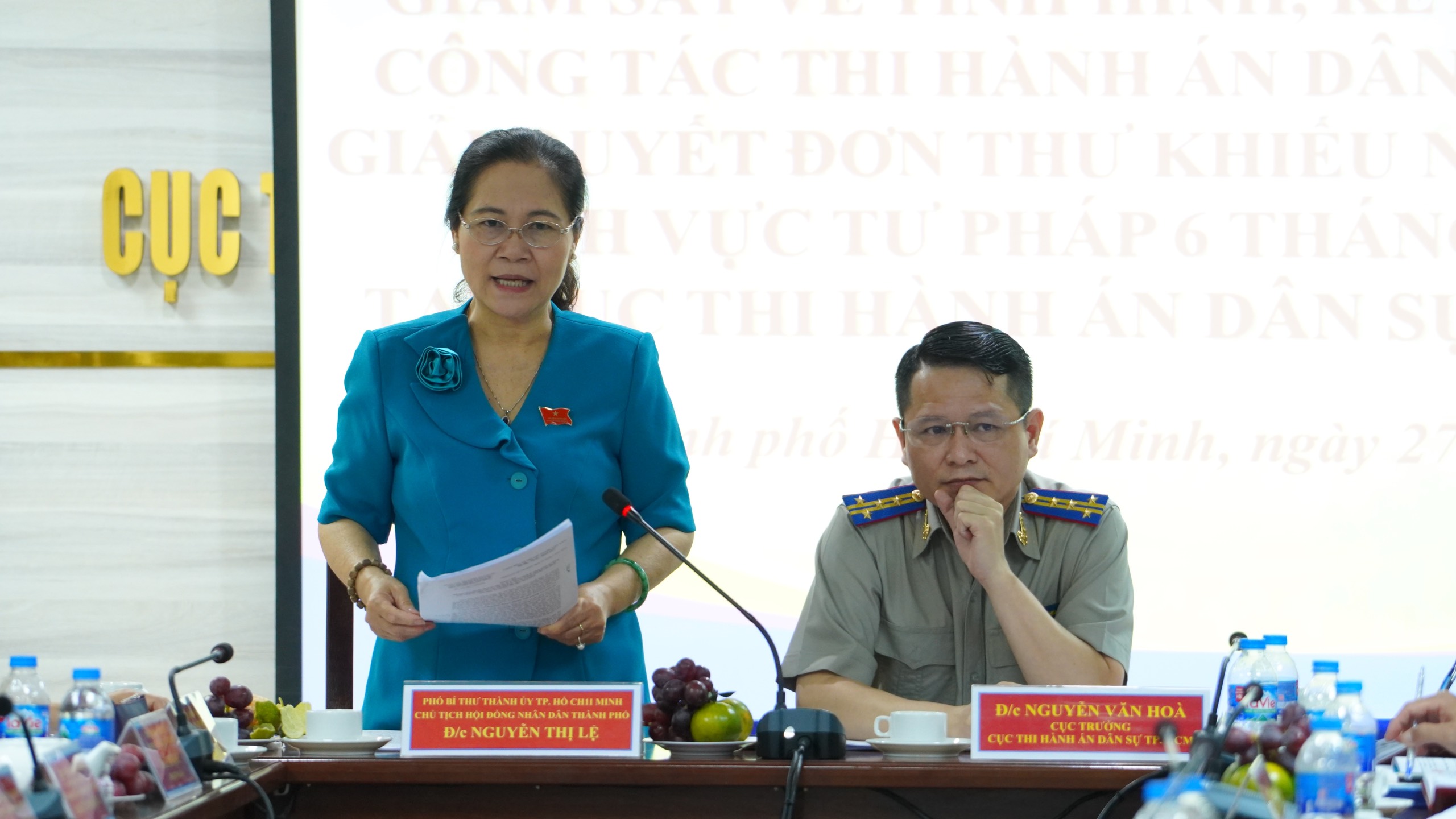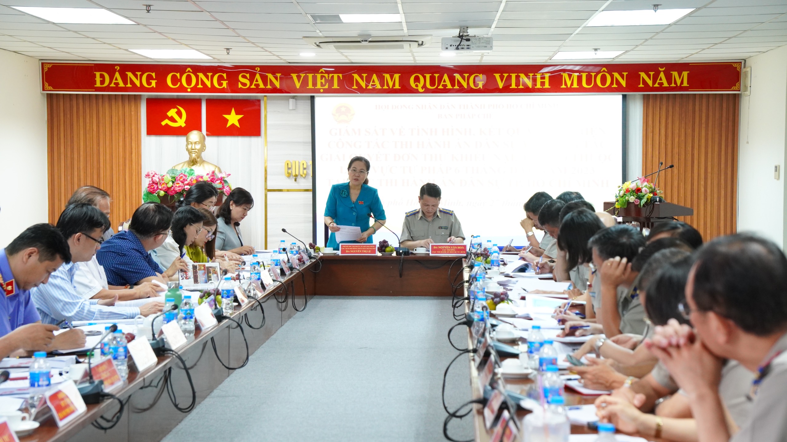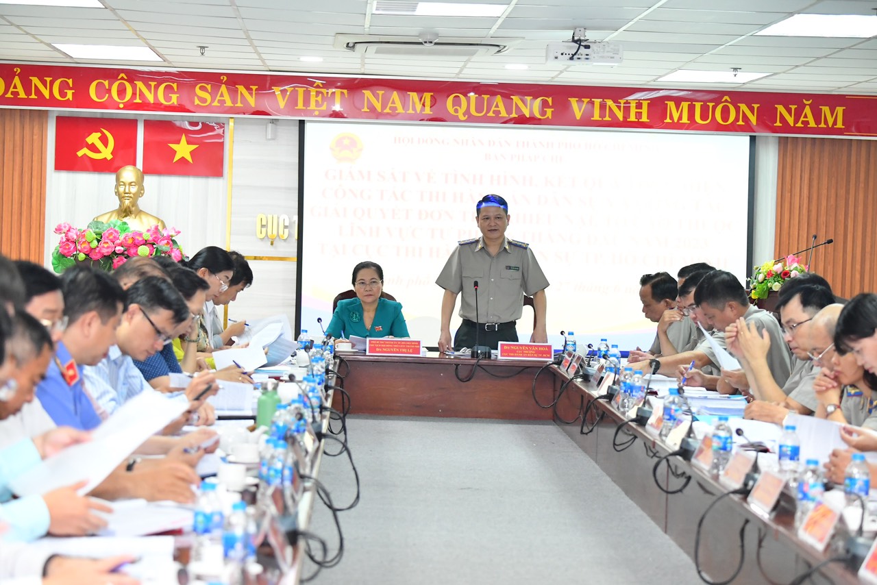Ngày 27/6, tại Cục Thi hành án dân sự (THADS) thành phố Hồ Chí Minh (TP.HCM), Đoàn giám sát Hội đồng nhân dân TP.HCM do đồng chí Nguyễn Thị Lệ, Phó Bí Thư Thành uỷ, Chủ tịch Hội đồng nhân dân Thành phố làm Trưởng đoàn có buổi làm việc với Cục THADS Thành phố về tình hình, kết quả hoạt động công tác THADS và công tác giải quyết đơn thư khiếu nại, tố cáo thuộc lĩnh vực THADS trên địa bàn Thành phố.
