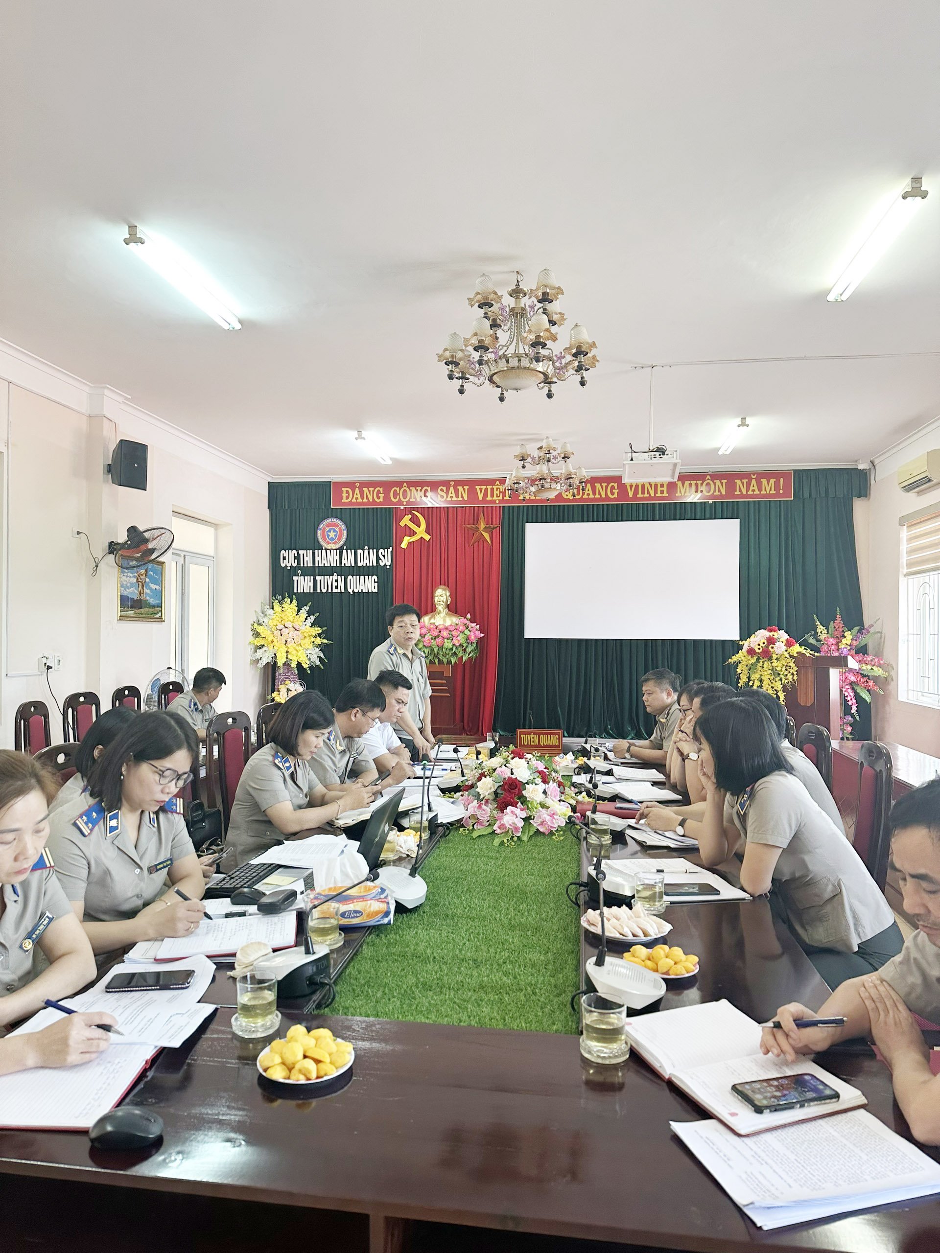 Đoàn kiểm tra số 3 – Khu vực thi đua gồm đại diện Lãnh đạo Cục THADS, Lãnh đạo phòng TCCB và công chức làm công tác thi đua, khen thưởng của Cục THADS 03 tỉnh (Cục THADS tỉnh Hoà Bình, Bắc Giang, Bắc Kạn), đoàn do đ/c Trần Văn Dũng – Cục trưởng Cục THADS tỉnh Hoà Bình làm trưởng đoàn đã tiến hành kiểm tra công tác thi đua, khen thưởng năm 2023 đối với Cục Thi hành án dân sự tỉnh Tuyên Quang và Chi cục THADS thành phố Tuyên Quang.