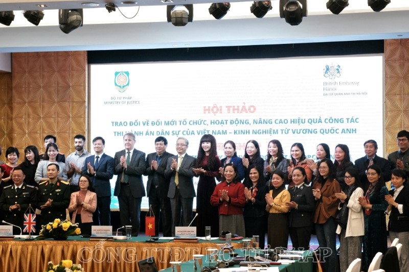 Thực hiện Bản ghi nhớ về hợp tác trong lĩnh vực pháp luật và tư pháp giữa Chính phủ nước CHXHCN Việt Nam và Chính phủ Vương quốc Liên hiệp Anh, Bắc Ai-Len ký năm 2008, sáng 07/12, tại Hà Nội, Bộ Tư pháp chủ trì, phối hợp với Đại sứ quán Vương quốc Liên hiệp Anh và Bắc Ai-Len tại Hà Nội tổ chức Hội thảo với chủ đề “Trao đổi về đổi mới tổ chức, hoạt động, nâng cao hiệu quả công tác thi hành án dân sự của Việt Nam - kinh nghiệm từ Vương Quốc Anh”.