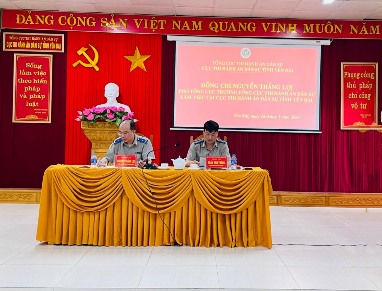 Sau khi nghe ý kiến của các đơn vị, Phó Tổng cục trưởng Nguyễn Thắng Lợi đã biểu dương và đánh giá cao kết quả của các cơ quan THADS tỉnh Yên Bái đã đạt được trong 07 tháng đầu năm 2024. Đồng chí Phó Tổng cục trưởng nhấn mạnh Yên Bái là đơn vị còn gặp nhiều khó khăn trong công tác tổ chức thi hành án do địa hình miền núi, ý thức chấp hành pháp luật của một bộ phận người dân còn thấp, các vụ việc thi hành án có xu hướng tăng về số lượng và mức độ phức tạp. Mặc dù vậy, thời gian qua, lãnh đạo, công chức, người lao động cơ quan THADS tỉnh Yên Bái đã đoàn kết và cơ bản thực hiện tốt các mặt công tác như công tác tiếp công dân, giải quyết khiếu nại, tố cáo, công tác hướng dẫn nghiệp vụ, công tác phối hợp trong THADS, công tác tổ chức, cán bộ, công tác chỉ đạo, điều hành.