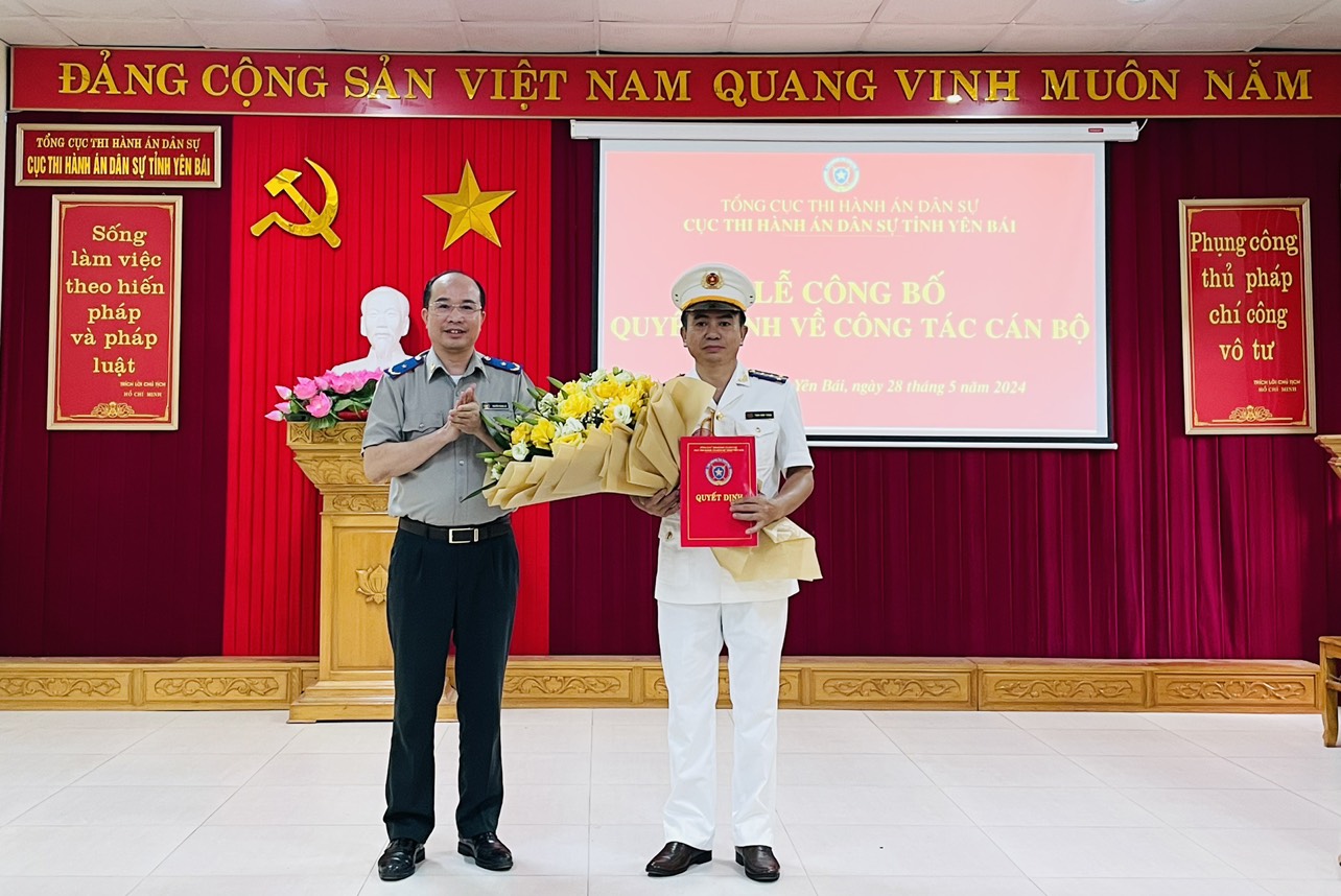 Sau khi kết thúc buổi làm việc về thi hành án dân sự, theo dõi thi hành án hành chính 07 tháng đầu năm 2024, phương hướng nhiệm vụ trong 05 tháng cuối năm 2024 của các cơ quan THADS tỉnh Yên Bái, kết quả thực hiện Công văn số 693-CV/BCSĐ ngày 11/01/2024, đồng chí Phó Tổng cục trưởng Nguyễn Thắng Lợi đã trao Quyết định bổ nhiệm Phó Cục trưởng Cục THADS tỉnh Yên Bái đối với đồng chí Trịnh Minh Thuận, Trưởng phòng Phòng Giải quyết khiếu nại, tố cáo. Phát biểu giao nhiệm vụ cho đồng chí Trịnh Minh Thuận, đồng chí Phó Tổng cục trưởng nhấn mạnh: đồng chí Thuận là cán bộ có trình độ, năng lực, nhiều kinh nghiệm trong công tác, kinh qua nhiều vị trí công tác và hoàn thành tốt mọi nhiệm vụ được giao. Đồng chí Phó Tổng cục trưởng đề nghị đồng chí Thuận từ những kinh nghiệm công tác của bản thân, tiếp tục phát huy những thành tích đã đạt được, tiếp tục phấn đấu tu dưỡng và rèn luyện; nâng cao hiệu quả trong công tác quản lý, chỉ đạo, điều hành; siết chặt kỷ luật, kỷ cương, lề lối làm việc, bảo đảm dân chủ, công khai, minh bạch đối với nhiệm vụ được giao; chủ động trong việc cùng tập thể Lãnh đạo Cục triển khai đồng bộ các giải pháp, tiếp tục tạo sự đột phá trong công tác thi hành án dân sự, hành chính trên địa bàn tỉnh Yên Bái trong năm công tác 2024 và những năm tiếp theo.