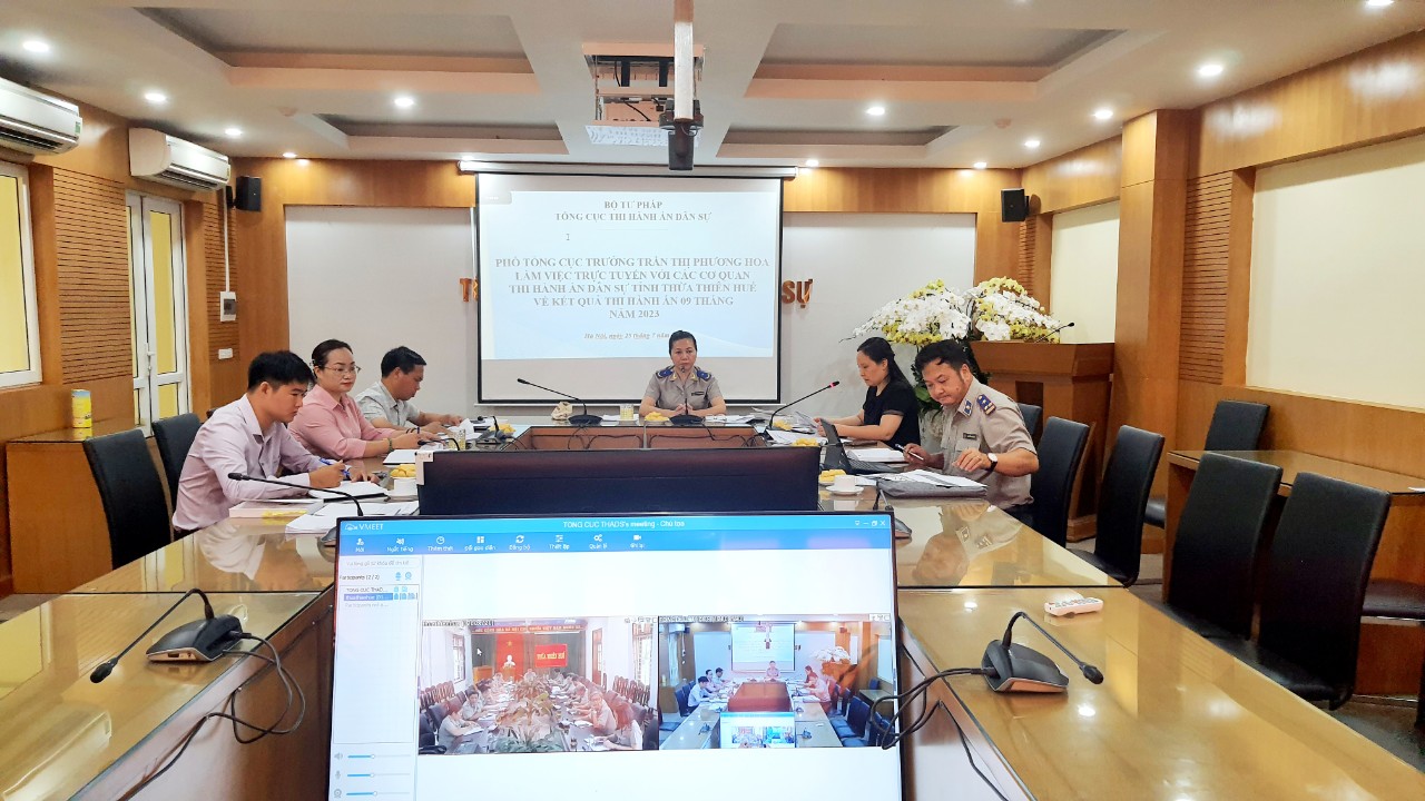 Phó Tổng cục trưởng Trần Thị Phương Hoa làm việc trực tuyến với Cục Thi hành án dân sự tỉnh Thừa Thiên Huế
