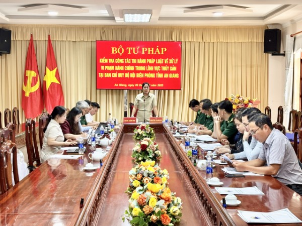 Tại buổi làm việc, ông Hồ Quang Huy nhấn mạnh, hoạt động kiểm tra được triển khai theo chỉ đạo của Chính phủ và Bộ trưởng Bộ Tư pháp nhằm đánh giá toàn diện tình hình thi hành pháp luật về xử lý vi phạm hành chính trong lĩnh vực thủy sản, đặc biệt là các vụ việc liên quan đến khai thác IUU; đồng thời kịp thời phát hiện khó khăn, vướng mắc trong thực tiễn để kiến nghị giải pháp hoàn thiện pháp luật.