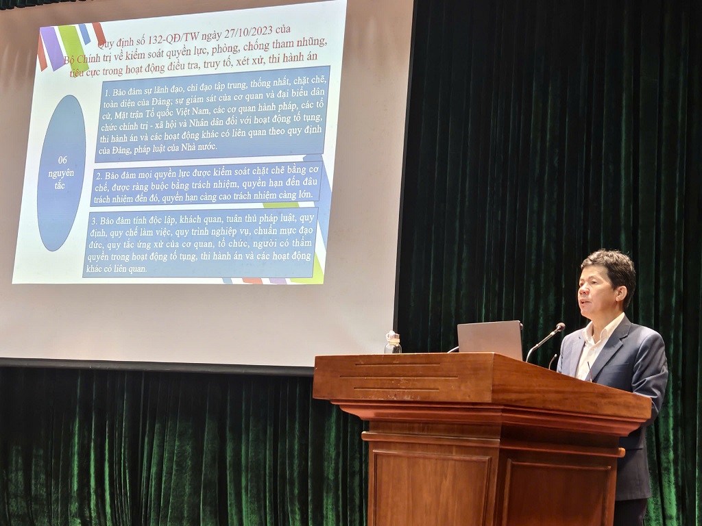 Trước đó, sáng ngày 23/12/2025, toàn thể công chức THADS thành phố đã được đồng chí Trưởng Ban Nội chính Thành uỷ Võ Công Chánh quán triệt tiếp tục thực hiện Quy định số 132-QĐ/TW của Bộ Chính trị về kiểm soát quyền lực, phòng, chống tham nhũng, tiêu cực trong hoạt động điều tra, truy tố, xét xử, thi hành án; Chỉ thị số 05-CT/TU ngày 10/11/2025 của Ban Thường vụ Thành ủy về tiếp tục đẩy mạnh cải cách hành chính, tăng cường kỷ luật, kỷ cương, khắc phục tình trạng né tránh, đùn đẩy, không làm đúng, đầy đủ chức trách, nhiệm vụ, quyền hạn trong thực thi công vụ và Chỉ thị số 03-CT/TU ngày 28/10/2025 của Ban Thường vụ Thành uỷ về tăng cường sự lãnh đạo của Đảng đối với công tác THADS, THAHC và thu hồi tài sản bị thất thoát, chiếm đoạt trong các vụ án hình sự về tham nhũng, kinh tế; đồng chí Nguyễn Thị Kim Quy, Phó trưởng Ban Pháp chế và nghiệp vụ THADS triển khai những điểm mới của Luật THADS (sửa đổi) năm 2025; quán triệt thực hiện các kiến nghị, kết luận của cơ quan có thẩm quyền; công tác theo dõi thi hành án hành chính và triển khai Nền tảng số THADS.