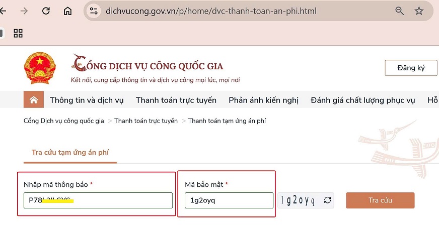 | Hình 1. Giao diện mục Thanh toán trực tuyến trên Cổng DVCQ) |