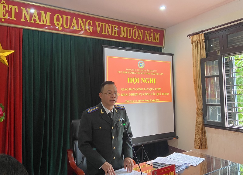 Tiếp tục đôn đốc triển khai các nhiệm vụ công tác nhằm tập trung hoàn thành chỉ tiêu, nhiệm vụ theo Nghị quyết của Quốc hội, Bộ Tư pháp, Tổng cục THADS và Cục THADS tỉnh giao; xây dựng và ban hành Kế hoạch công tác năm 2023 đảm bảo quy định, đề ra các giải pháp để tập trung triển khai thực hiện nhiệm vụ công tác của đơn vị năm 2023.