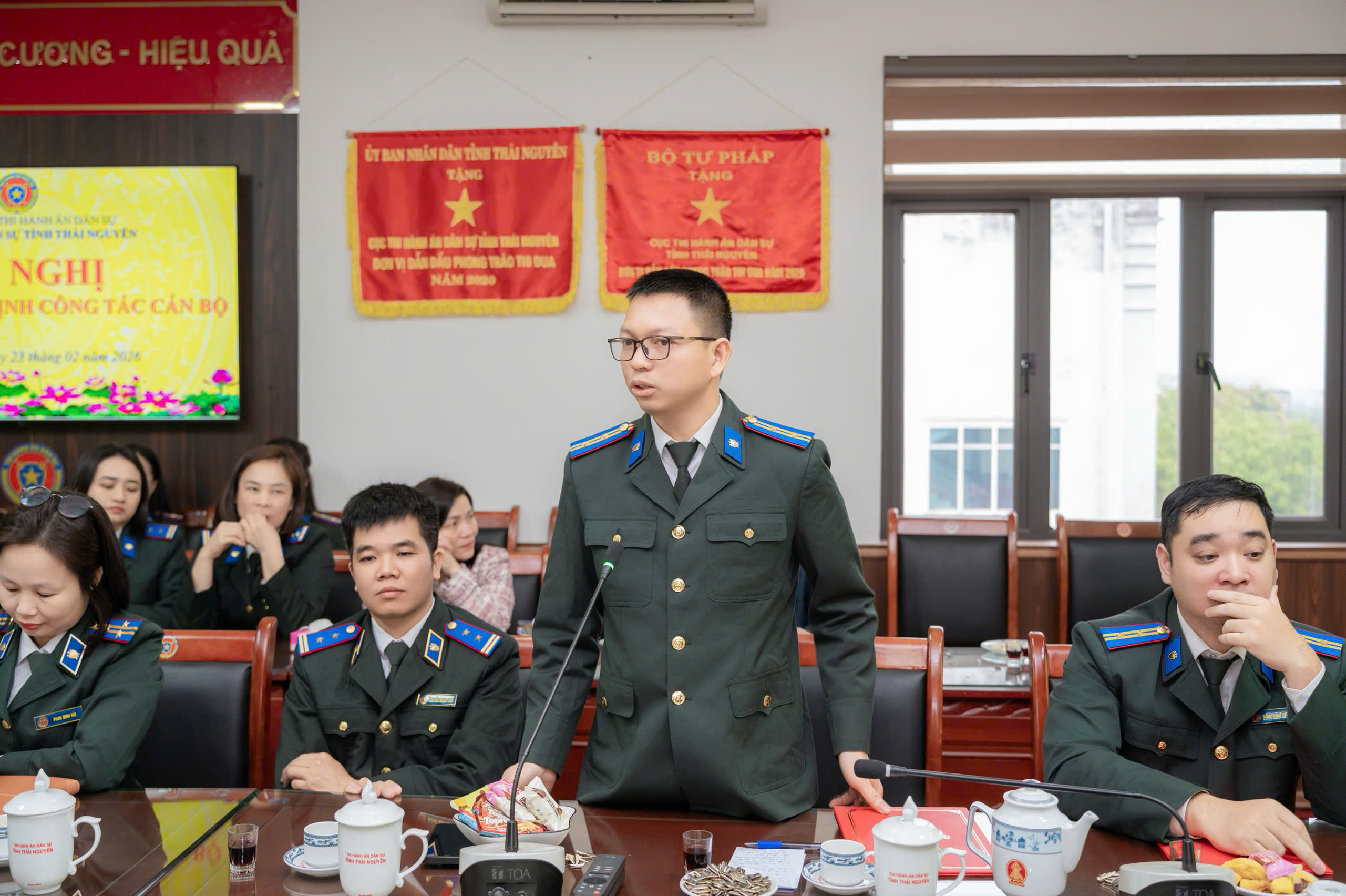 Sáng 23/02/2026, Thi hành án dân sự tỉnh Thái Nguyên tổ chức công bố và trao Quyết định của Bộ trưởng Bộ Tư pháp về bổ nhiệm Chấp hành viên sơ cấp cho 09 đồng chí thuộc Thi hành án tỉnh và các đơn vị khu vực. Việc bổ nhiệm thể hiện sự quan tâm của Ngành đối với công tác xây dựng, kiện toàn đội ngũ Chấp hành viên, đáp ứng yêu cầu nhiệm vụ trong tình hình mới; đồng thời ghi nhận quá trình phấn đấu, rèn luyện và nỗ lực chuyên môn của các đồng chí được bổ nhiệm.