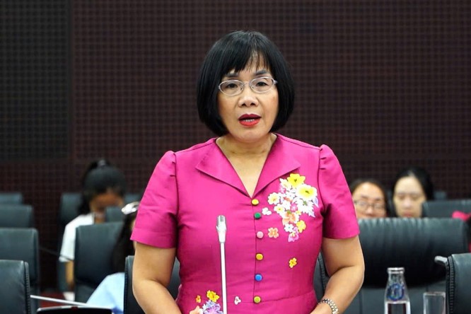 Thứ trưởng Bộ Tư pháp Đặng Hoàng Oanh, Trưởng đoàn kiểm tra liên ngành phát biểu tại buổi làm việc.
