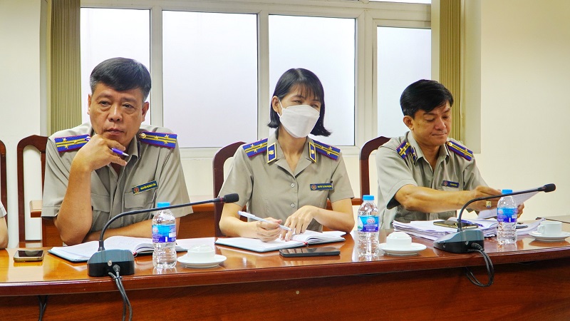 Thay mặt đoàn, Phó Viện trưởng VKSND Võ Quang Huy thông tin một số nội dung của buổi làm việc, Đại diện Phòng 11, Viện kiểm sát nhân dân thành phố công bố nội dung Quyết định số 3837/QĐ-VKS ngày 08/8/2022 của Viện kiểm sát nhân dân Thành phố Hồ Chí Minh về công bố quyết định trực tiếp kiểm sát hoạt động thi hành án dân sự và triển khai Kế hoạch số 3738/QĐ-VKS ngày 08/8/2022 kiểm sát trong thời hạn 45 ngày kể từ ngày công bố quyết định. Theo đó, nội dung kiểm sát gồm: Án có điều kiện thi hành án thi hành án nhưng chưa thi hành xong trên 3 năm; án chưa có điều kiện thi hành án; việc thi hành khoản sung công quỹ Nhà nước, tiêu hủy tài sản, hoàn trả tiền tạm giữ trong các bán án, quyết định hình sự chưa thi hành xong….