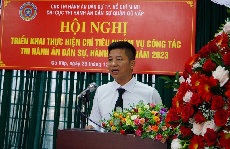 Chiều 23/12, Chi cục Thi hành án dân sự (THADS) quận Gò Vấp đã tổ chức Hội nghị triển khai thực hiện chỉ tiêu, nhiệm vụ THADS, THAHC năm 2023. Dự và chỉ đạo Hội nghị có ông Trần Phương Hồng, Phó Cục trưởng Cục THADS thành phố Hồ Chí Minh.