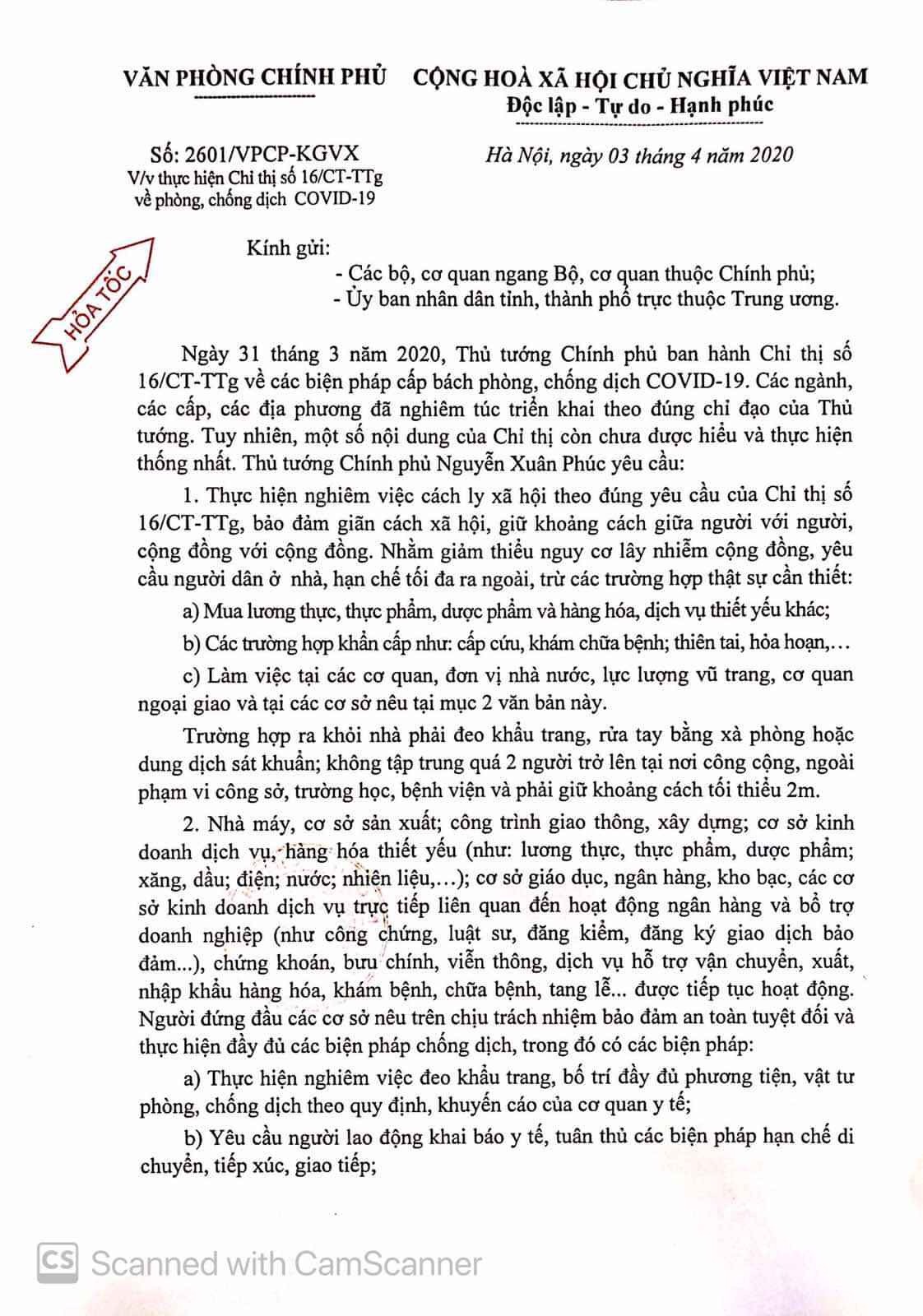 Ngày 31/3/2020, Thủ tướng Chính phủ ban hành Chỉ thị số 16/CT-TTg về các biện pháp cấp bách phòng, chống dịch Covid-19. Các ngành, các cấp, các địa phương đã nghiêm túc triển khai theo đúng chỉ đạo của Thủ tướng. Tuy nhiên, một số nội dung của Chỉ thị còn chưa được hiểu và thực hiện thống nhất.