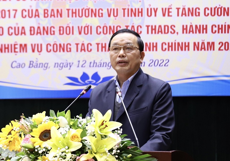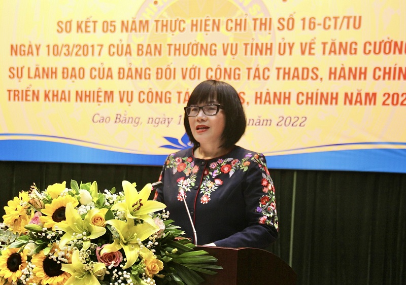 Thực hiện Chương trình công tác năm 2022 và Kế hoạch số 152-KH/TU ngày 01/07/2022 của Tỉnh ủy Cao Bằng về việc sơ kết 5 năm thực hiện Chỉ thị số 16-CT/TU ngày 10/3/2017 của Ban Thường vụ Tỉnh ủy về tăng cường sự lãnh đạo của Đảng đối với công tác Thi hành án dân sự (THADS), hành chính (Chỉ thị số 16-CT/TU), chiều ngày 12/12/2022, Tỉnh ủy Cao Bằng tổ chức Hội nghị sơ kết 5 năm triển khai thực hiện Chỉ thị số 16-CT/TU và triển khai nhiệm vụ công tác THADS năm 2023.