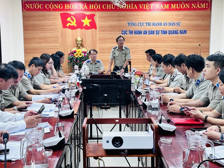 Nhằm nâng cao chất lượng, hiệu quả công tác thi hành án tín dụng ngân hàng; định giá, bán đấu giá tài sản thi hành án, góp phần hoàn thành chỉ tiêu, nhiệm vụ thi hành án tín dụng ngân hàng nói riêng, thi hành án dân sự nói chung. Thực hiện Quyết định số 773/QĐ-TCTHADS ngày 20/6/2024 của Tổng cục trưởng Tổng cục Thi hành án dân sự (THADS), Kế hoạch kiểm tra số 2413/KH-TCTHADS ngày 21/6/2024, Đoàn kiểm tra của Tổng cục THADS đã thực hiện việc công bố Quyết định kiểm tra, Kế hoạch kiểm tra tại Cục THADS tỉnh Quảng Nam.