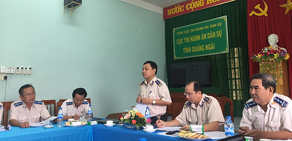 Tại buổi làm việc, đồng chí Phan Tấn Nộ, Cục trưởng Cục Thi hành án dân sự tỉnh Quảng Ngãi đã trình bày Báo cáo phục vụ Đoàn kiểm tra. Theo đó, đối với công tác tổ chức thi hành án năm 2016, Cục Thi hành án dân sự tỉnh Quảng Ngãi tổ chức thi hành 283 việc tương ứng với số tiền gần 52,76 tỷ đồng. Trong đó, có điều kiện thi hành là 220 việc (28,38 tỷ đồng), giải quyết xong 166 việc (9,91 tỷ đồng). Đạt tỷ lệ 75% về việc (vượt 02% so với chỉ tiêu được giao), 35% về tiền (vượt 02% so với chỉ tiêu được giao).
