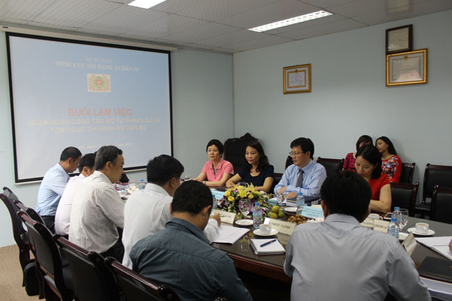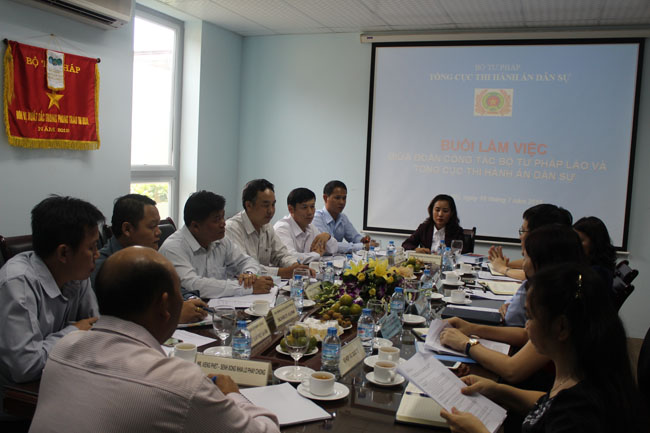 Tại buổi làm việc, đồng chí Bun Mệc Ban-Na-Vông, Vụ trưởng Vụ Tổ chức cán bộ cho biết mục đích của buổi làm việc lần này của Đoàn nhằm tìm hiểu, trao đổi kinh nghiệm về công tác thi hành án dân sự. Đồng thời là một phần trong nội dung quan trọng nhằm thực hiện thỏa thuận hợp tác trong lĩnh vực pháp luật và tư pháp giữa Bộ Tư pháp hai nước Việt Nam - Lào giai đoạn 2015 - 2020. Với mục đích và ý nghĩa đó, đồng chí Bun Mệc Ban-Na-Vông mong rằng, thời gian tới mối quan hệ hợp tác hữu nghị giữa cơ quan Tư pháp hai nước Việt Nam - Lào ngày càng được củng cố và phát triển.
