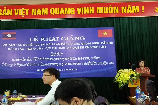 Đây là một nội dung phát biểu chỉ đạo của Thứ trưởng Bộ Tư pháp Đặng Hoàng Oanh tại buổi Lễ khai giảng Lóp đào tạo nghiệp vụ thi hành án cho giảng viên, các chức danh tư pháp, cán bộ tư pháp và pháp luật công tác trong lĩnh vực thi hành án của nước Cộng hòa dân chủ nhân dân Lào do Học viện Tư pháp tổ chức chiều ngày 31/7/2018. Tham dự buổi Lễ khai giảng có đồng chí Bí thư Thứ nhất Đại sứ quán Cộng hòa dân chủ nhân dân Lào Outhay Banavong; đồng chí Phó Tổng cục trưởng Tổng cục Thi hành án dân sự Nguyễn Thanh Thủy cùng đại diện một số đơn vị trong và ngoài Bộ Tư pháp, nhiều giảng viên kiêm chức của Tổng cục Thi hành án dân sự, cơ quan thi hành án dân sự ở Hà Nội.