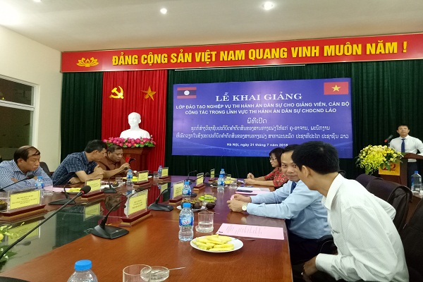 Phát biểu tại biểu Lễ khai giảng, đồng chí Bí thư thứ nhất Đại sứ quán Cộng hòa dân chủ nhân dân Lào Outhay Banavong đánh giá khóa học thể hiện sự hợp tác tốt đẹp giữa hai nước và được học viên đặt nhiều kỳ vọng. Đại diện học viên lớp đào tạo đã gửi lời cảm ơn sâu sắc tới Chính phủ hai nước, đặc biệt là Bộ Tư pháp hai nước đã khi đã quan tâm, tạo điều kiện tổ chức khóa học này khẳng định đây chính là cơ hội quý báu để các học viên học hỏi, trao đổi kinh nghiệm, hứa sẽ nghiêm túc học tập, tích cực rèn luyện về mọi mặt để đáp ứng các yêu cầu của khóa học.