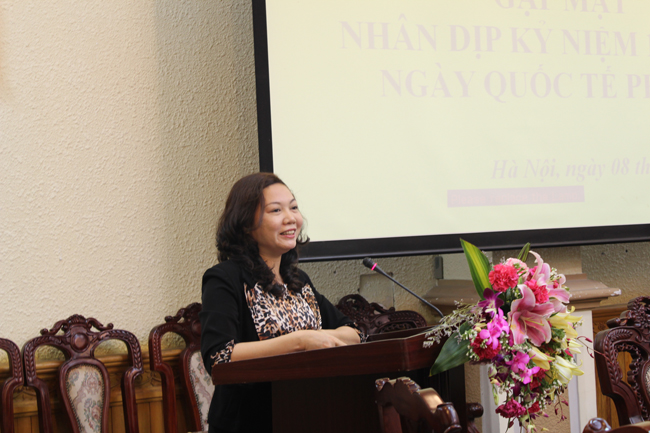 Trong không khí vui tươi, phấn khởi chào mừng ngày Quốc tế phụ nữ, đồng chí Trần Minh Phượng - Phó trưởng Ban Vì sự tiến bộ phụ nữ Tổng cục Thi hành án dân sự trình bày thực trạng công tác nữ công, công tác phát triển cán bộ nữ trong Tổng cục Thi hành án dân sự. Hiện nay, đội ngũ nữ cán bộ công chức, người lao động trong Tổng cục gồm 65 chị em/116 biên chế, chiếm tỉ lệ 56%. Các chị em đã có nhiều cố gắng, nỗ lực, luôn học tập nâng cao trình độ chuyên môn nghiệp vụ, trình độ lý luận, tin học, ngoại ngữ đáp ứng yêu cầu nhiệm vụ. Để tăng cường phong trào phụ nữ, Ban Vì sự tiến bộ phụ nữ đã được thành lập từ 31/8/2011, kiện toàn thêm vào ngày 10/5/2012. Thời gian qua, Ban Vì sự tiến bộ phụ nữ đã đề ra nhiều giải pháp nhằm nâng cao chất lượng hoạt động của Ban; đẩy mạnh phong trào thi đua của phụ nữ trong Tổng cục nói riêng và toàn Ngành nói chung. Tuy nhiên, bên cạnh những kết quả tích cực đã đạt được về các công tác cán bộ, quy hoạch, đào tạo, bồi dưỡng, hoạt động phong trào..., hoạt động vì sự tiến bộ phụ nữ của Ngành vẫn còn nhiều khó khăn, hạn chế tồn tại. Trong thời gian tới, hoạt động vì sự tiến bộ phụ nữ tiếp tục phát huy những kết quả đã đạt được, đồng thời nghiêm túc nhìn nhận những tồn tại, hạn chế với mục tiêu xây dựng đội ngũ cán bộ công chức nữ thi hành án dân sự đủ mạnh để đảm đương nhiệm vụ, trọng trách của các cơ quan Thi hành án dân sự, xứng đáng với truyền thống tốt đẹp của người phụ nữ Việt Nam.