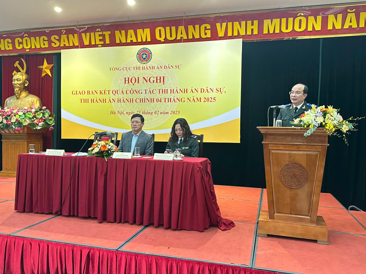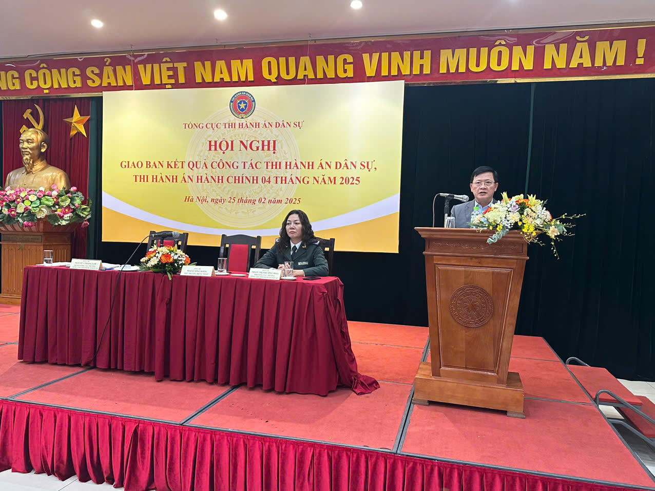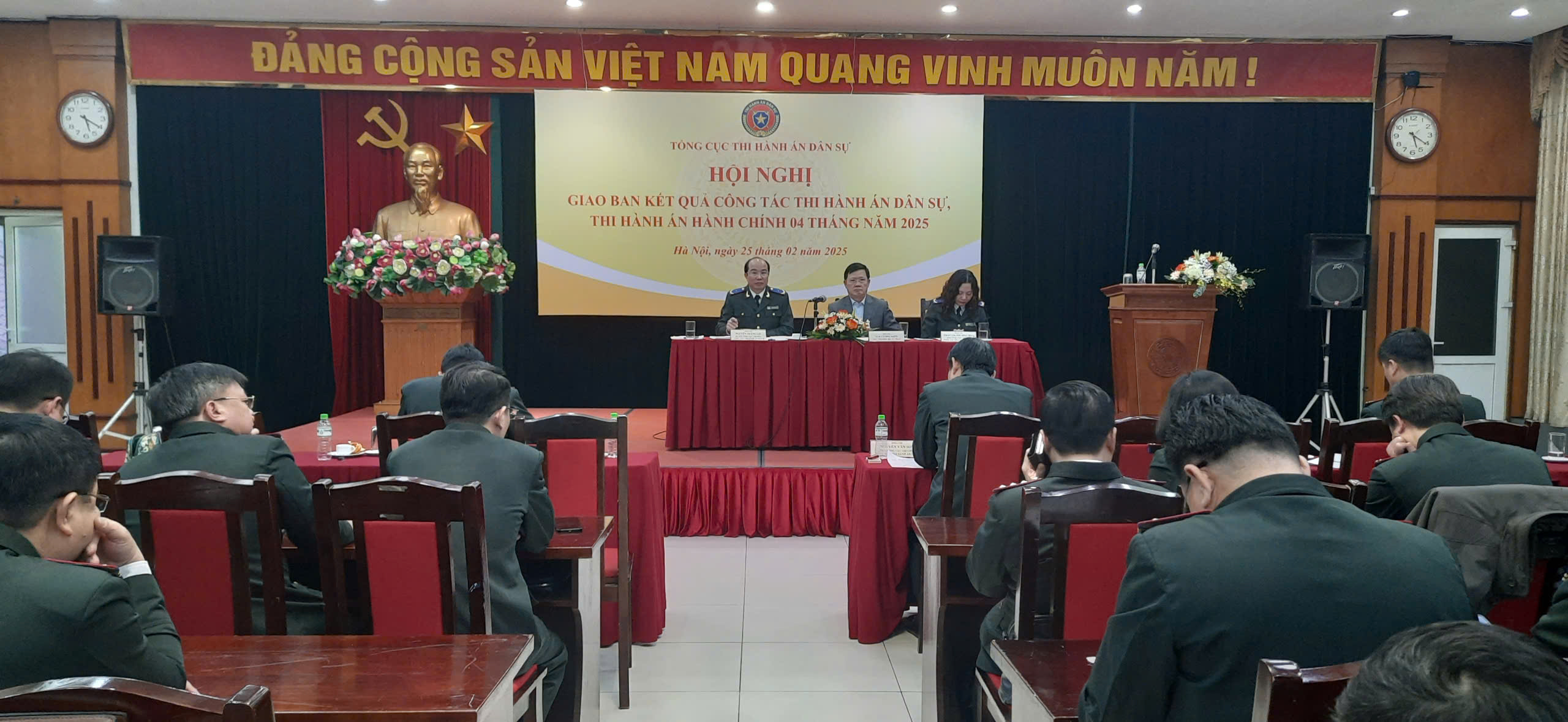 Chiều ngày 25/02/2025, Tổng cục Thi hành án dân sự tổ chức Hội nghị giao ban kết quả công tác Thi hành án dân sự (THADS), Thi hành án hành chính (THAHC) 04 tháng đầu năm 2025. Thứ trưởng Bộ Tư pháp Mai Lương Khôi và Quyền Tổng cục trưởng Tổng cục THADS Nguyễn Thắng Lợi chủ trì Hội nghị.