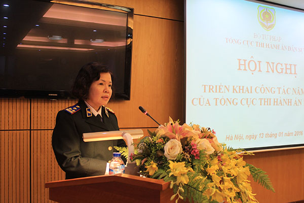 Sáng ngày 13/01/2016, Tổng cục Thi hành án dân sự đã tổ chức Hội nghị triển khai công tác năm 2016. Đến dự Hội nghị có đồng chí Phan Thị Hồng Hà, Phó Vụ trưởng Vụ Tổ chức cán bộ, Bộ Tư pháp. Đồng chí Hoàng Sỹ Thành, Tổng cục trưởng Tổng cục Thi hành án dân sự chủ trì và chỉ đạo Hội nghị.