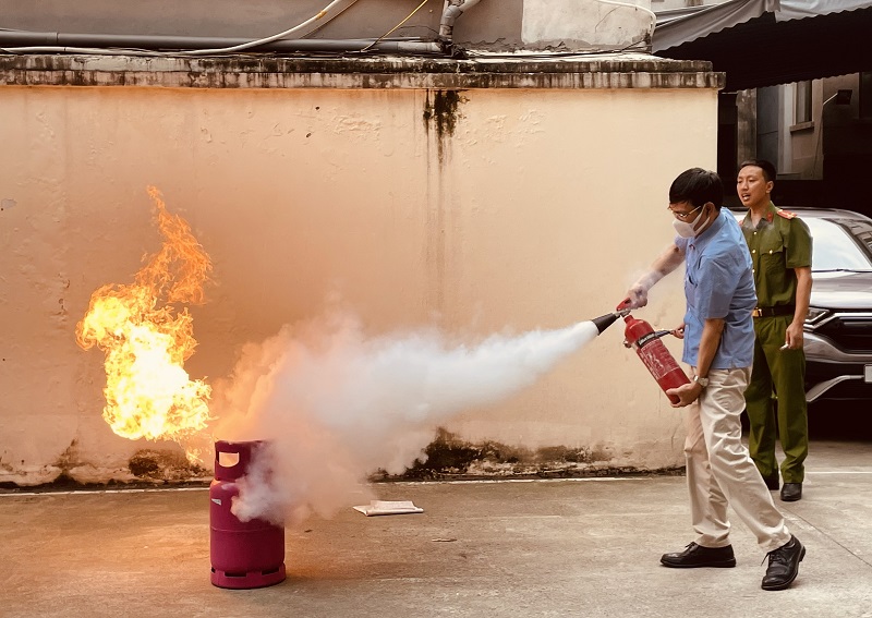 Nhằm sẵn sàng ứng phó trong trường hợp có sự cố cháy, nổ, hướng dẫn sử dụng các trang thiết bị chữa cháy, sáng ngày 22/9/2022, tại trụ sở 139 Nguyễn Thái Học, Ba Đình, Hà Nội, Tổng cục Thi hành án dân sự (THADS) phối hợp với Công an quận Ba Đình, Trường Đại học Phòng cháy, chữa cháy và một số đơn vị liên quan tổ chức tập huấn nghiệp vụ phòng cháy, chữa cháy (PCCC) và cứu nạn, cứu hộ (CNCH) tại chỗ cho công chức, viên chức và người lao động các đơn vị thuộc Tổng cục và một số đơn vị liên quan.