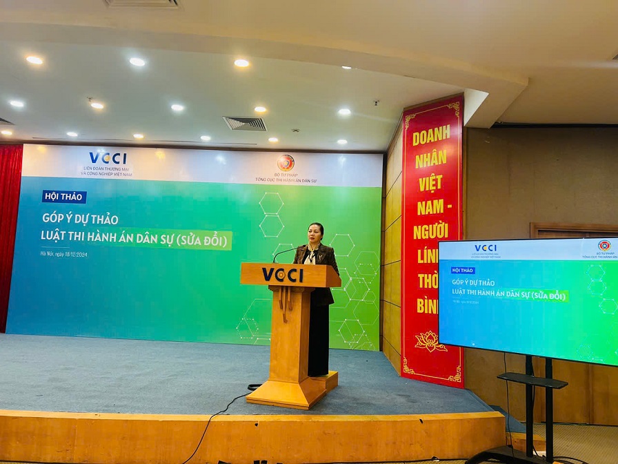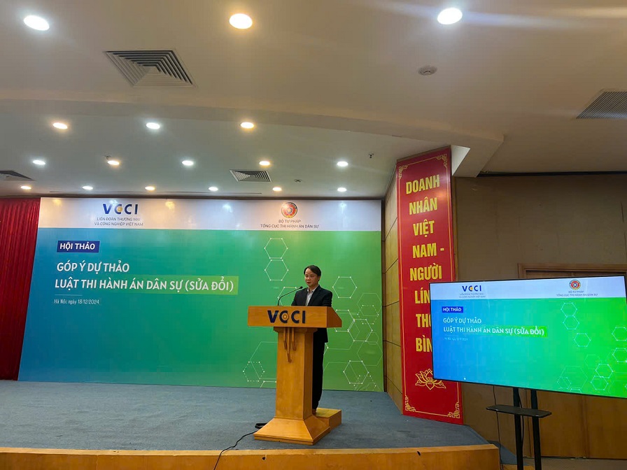 Để lắng nghe ý kiến của cộng đồng doanh nghiệp, các tổ chức tín dụng và các tổ chức hành nghề luật sư… một trong những đối tượng chịu sự tác động của Luật THADS, nhằm hoàn thiện Dự thảo Luật, ngày 18/12/2024, Tổng cục THADS và Liên đoàn Thương mại và Công nghiệp Việt Nam đã phối hợp tổ chức thành công Hội thảo “Góp ý Dự thảo Luật Thi hành án dân sự (sửa đổi)”.