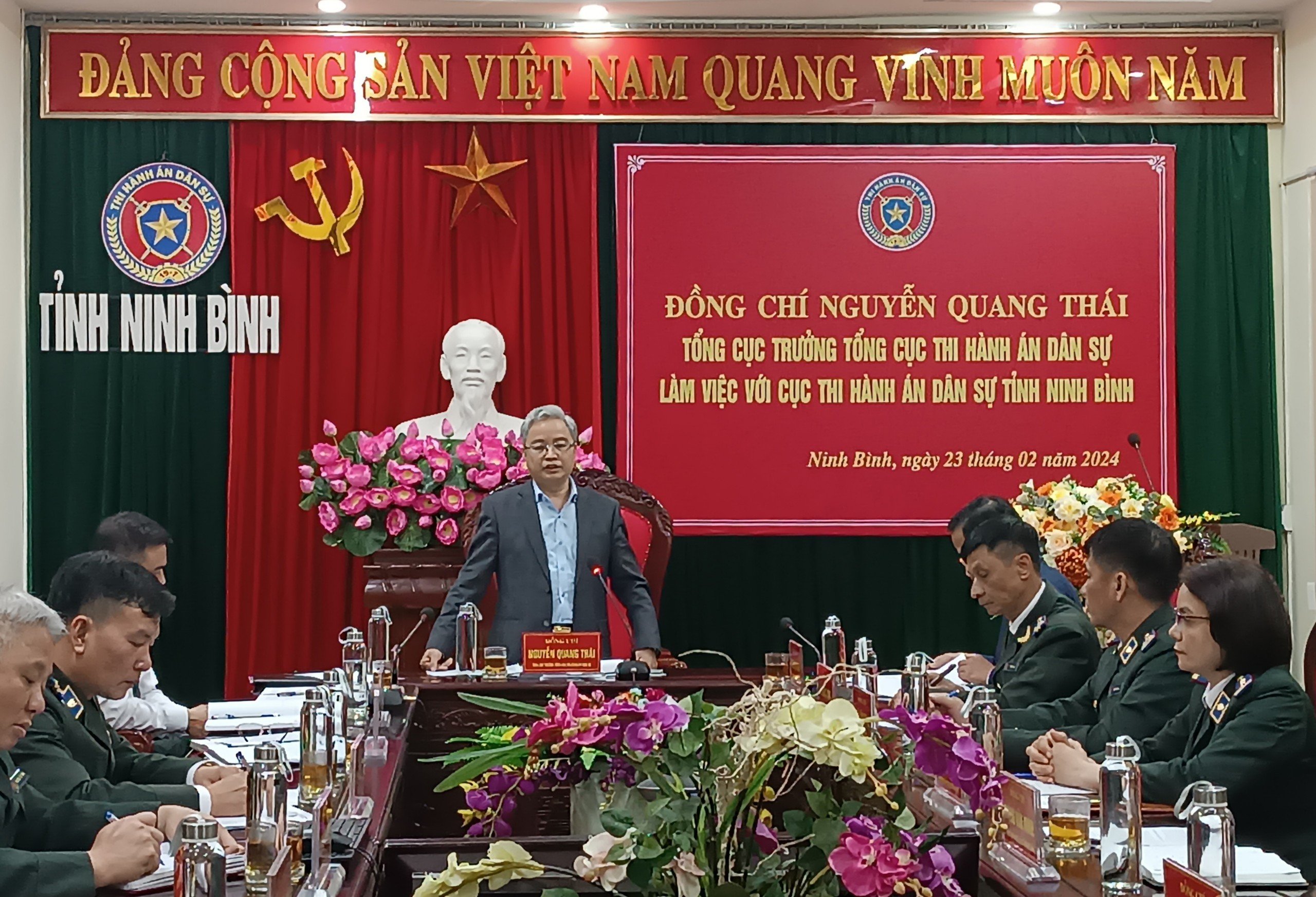 Ngày 23/02/2024, Tổng Cục trưởng Nguyễn Quang Thái cùng đoàn công tác của Tổng cục Thi hành án dân sự (THADS) đã có buổi làm việc với Cục THADS tỉnh Ninh Bình.