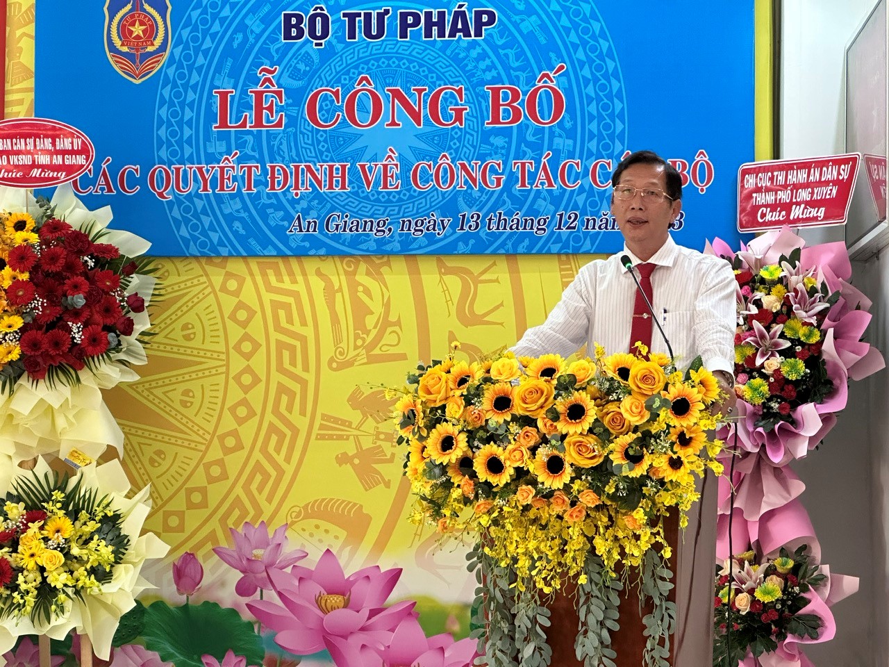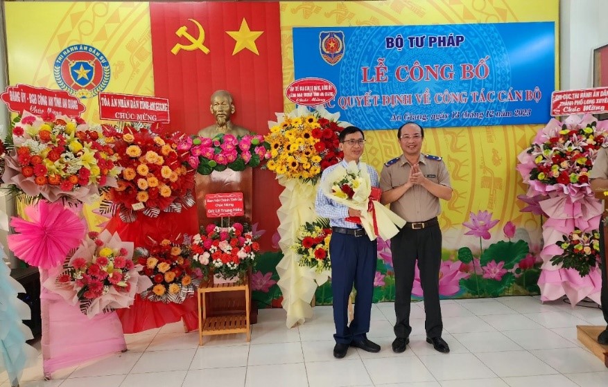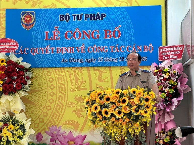 Chiều ngày 13 tháng 12 năm 2023, tại Cục Thi hành án dân sự tỉnh An Giang, Tổng cục Thi hành án dân sự đã công bố quyết định của Bộ trưởng Bộ Tư pháp về việc bổ nhiệm Cục trưởng Cục Thi hành án dân sự tỉnh An Giang.
