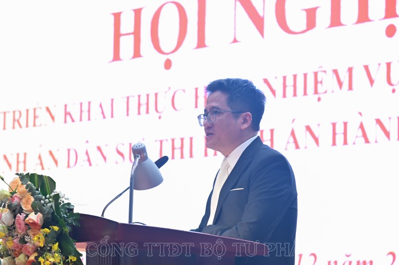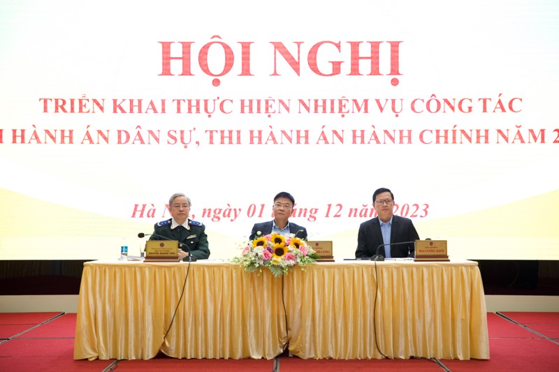 Sáng 01/12, Bộ Tư pháp tổ chức Hội nghị triển khai thực hiện nhiệm vụ công tác thi hành án dân sự (THADS), thi hành án hành chính (THAHC) năm 2024. Bộ trưởng Lê Thành Long, Thứ trưởng Mai Lương Khôi và Tổng cục trưởng Tổng cục THADS Nguyễn Quang Thái đồng chủ trì Hội nghị.