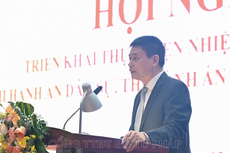 Đối với đề xuất sửa đổi Luật Thi hành án dân sự, Bộ trưởng nhận định đây là vấn đề quan trọng, cần tập trung nghiên cứu kỹ lưỡng, thấu đáo, đảm bảo tính đồng thuận, khả thi. Cùng với đó, Bộ trưởng cũng yêu cầu các cơ quan THADS cần làm tốt công tác phối hợp liên ngành, phối hợp với cấp uỷ chính quyền địa phương để kịp thời tháo gỡ những vướng mắc; siết chặt kỷ luật, kỷ cương hành chính; nâng cao trách nhiệm gương mẫu của người đứng đầu.