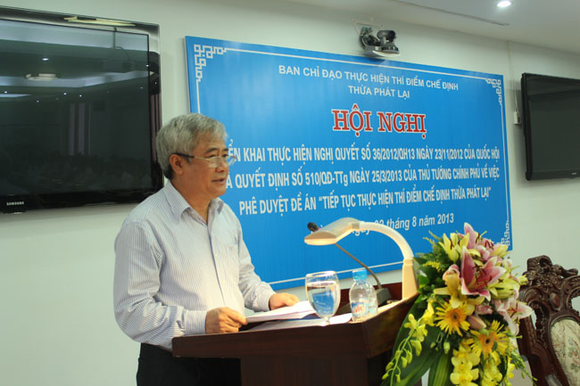 Tại Hội nghị, Thứ trưởng Bộ Tư pháp Nguyễn Đức Chính cho biết: Thể chế hóa chủ trương của Đảng, ngày 14/11/2008 Quốc hội đã ban hành Nghị quyết số 24/2008/QH12 về thi hành Luật Thi hành án dân sự, trong đó quy định việc thực hiện thí điểm chế định Thừa phát lại. Bộ Tư pháp đã chủ động phối hợp với các Bộ, ngành liên quan tham mưu trình Chính phủ ban hành Nghị định số 61/2009-CP ngày 24/7/2009 về tổ chức và hoạt động của Thừa phát lại thực hiện thí điểm tại thành phố Hồ Chí Minh. Theo đó, Thừa phát lại là người có đủ các tiêu chuẩn do pháp luật quy định, được Nhà nước bổ nhiệm để làm các công việc về thi hành án dân sự và làm các công việc khác theo quy định của pháp luật có liên quan.