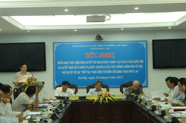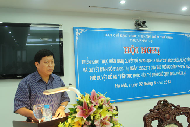 Sáng ngày 02/8, tại Hà Nội, Ban Chỉ đạo thực hiện thí điểm chế định Thừa phát lại đã tổ chức Hội nghị triển khai thực hiện Nghị quyết số 36/2012/QH13 của Quốc hội và Quyết định số 510/QĐ-TTg của Thủ tướng Chính phủ về việc phê duyệt Đề án “Tiếp tục thực hiện thí điểm chế định Thừa phát lại”. Bộ trưởng Bộ Tư pháp Hà Hùng Cường, Trưởng Ban Chỉ đạo thực hiện thí điểm chế định Thừa phát lại chủ trì Hội nghị.
