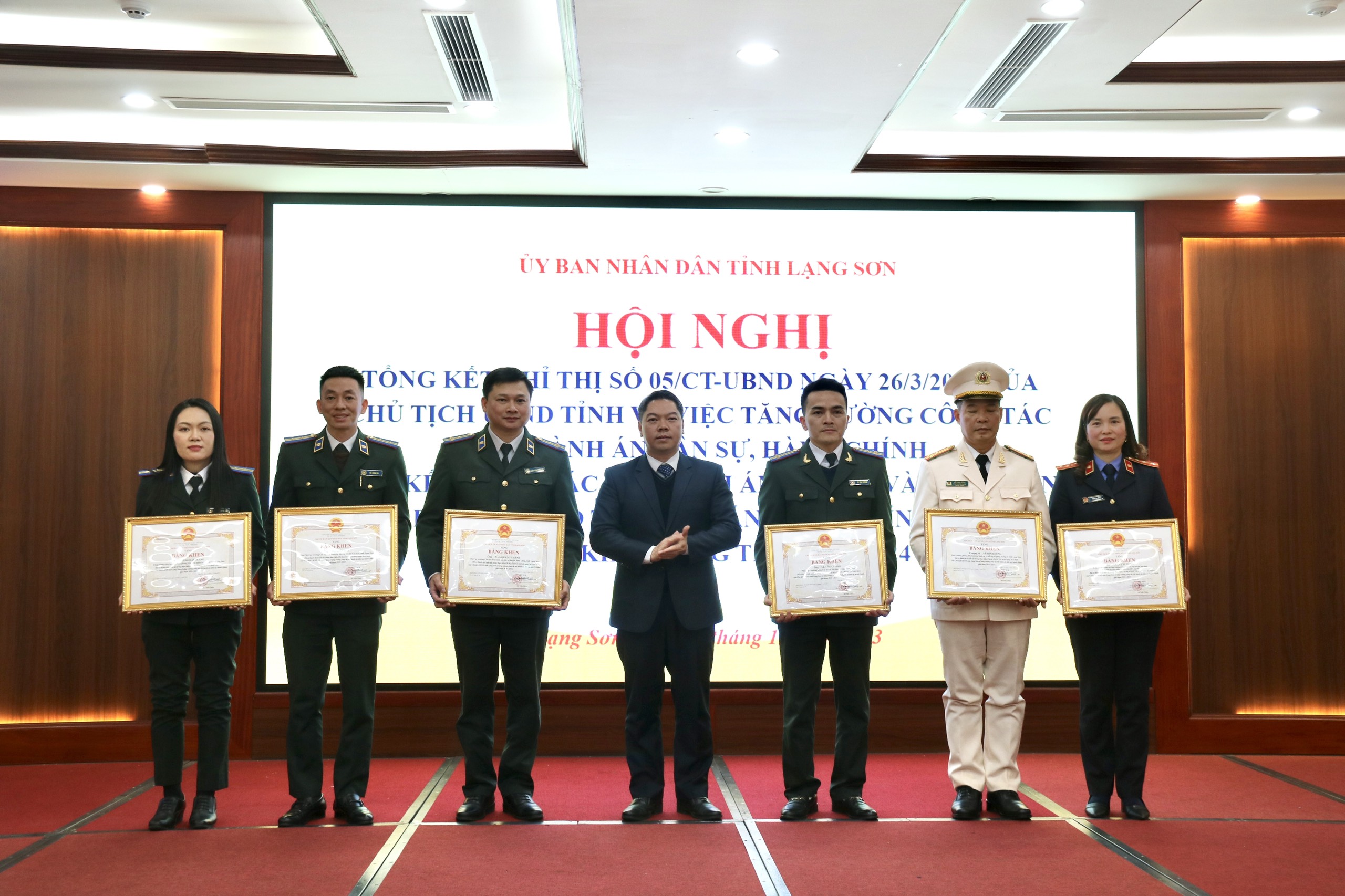 Kết thúc hội nghị, để ghi nhận thành tích đạt được, UBND tỉnh đã tặng Bằng khen cho 7 tập thể và 6 cá nhân có thành tích xuất sắc trong thực hiện Chỉ thị số 05/CT-UBND ngày 26/3/2018 về việc tăng cường công tác THADS, hành chính giai đoạn 2018 – 2023.