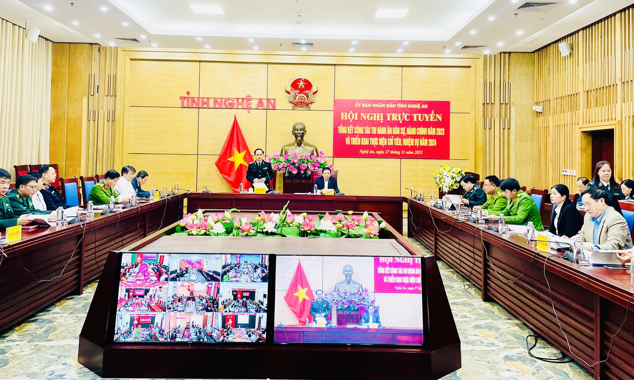 UBND tỉnh và UBND các huyện, thành phố, thị xã trên địa bàn tỉnh Nghệ An tổ chức Hội nghị tổng kết công tác Thi hành án dân sự, hành chính, tổng kết hoạt động của Ban chỉ đạo Thi hành án dân sự năm 2023 và triển khai thực hiện chỉ tiêu, nhiệm vụ năm 2024.