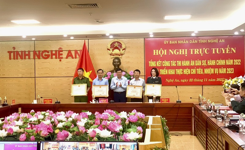 Uỷ ban nhân dân tỉnh Nghệ An tổ chức Hội nghị trực tuyến tổng kết công tác thi hành án dân sự, hành chính năm 2022 và triển khai thực hiện chỉ tiêu, nhiệm vụ năm 2023