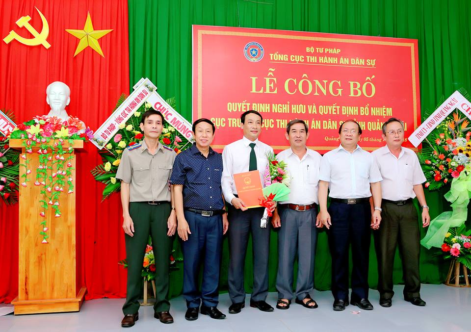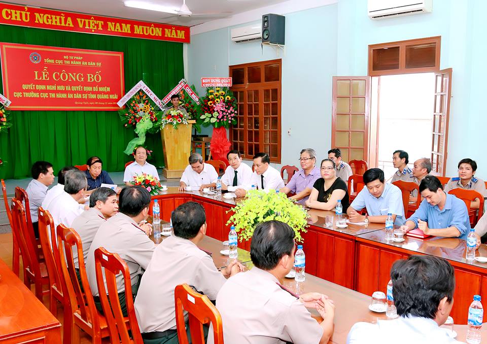Thực hiện Quyết định số 2167/QĐ-BTP ngày 09/8/2018 của Bộ trưởng Bộ Tư pháp về việc nghỉ hưu để hưởng chế độ bảo hiểm xã hội đối với đồng chí Phan Tấn Nộ và Quyết định số 2676/QĐ-BTP ngày 30/10/2018 của Bộ trưởng Bộ Tư pháp về việc bổ nhiệm đồng chí Nguyễn Mạnh Thắng giữ chức vụ Cục trưởng Cục THADS tỉnh Quảng Ngãi kể từ ngày 01/11/2018; ngày 05/11/2018, Bộ Tư pháp phối hợp với Ủy ban nhân dân tỉnh Quảng Ngãi tổ chức lễ công bố quyết định nghỉ hưu và quyết định bổ nhiệm Cục trưởng Cục THADS tỉnh Quảng Ngãi.