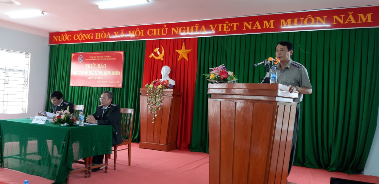 Về kết quả tổ chức thi hành án dân sự: trong Quý I năm 2019 các cơ quan THADS tỉnh Quảng Ngãi thụ lý 5.218 việc, đã ủy thác 13 việc, còn phải thi hành 5.205 việc, trong đó có 3.335 việc có điều kiện thi hành, 1.870 việc chưa có điều kiện thi hành, đã thi hành xong 1.126 việc, đạt tỷ lệ