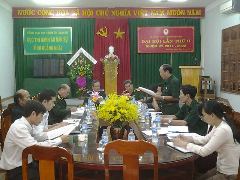 Thực hiện Kế hoạch số 82-KH/CCBK ngày 20/6/2016 của Ban Thường vụ Hội Cựu chiến binh Khối các cơ quan tỉnh Quảng Ngãi về công tác chuẩn bị và tổ chức Đại hội các cấp Hội Cựu chiến binh Khối các cơ quan tỉnh Khóa II, nhiệm kỳ 2017-2022; được sự thống nhất của Hội Cựu chiến binh Khối các cơ quan tỉnh và Chi ủy Chi bộ Cục THADS tỉnh Quảng Ngãi; ngày 17/02/2017, Hội Cựu chiến binh Cục THADS tỉnh Quảng Ngãi tổ chức Đại Hội lần thứ II, nhiệm kỳ 2017-2022.