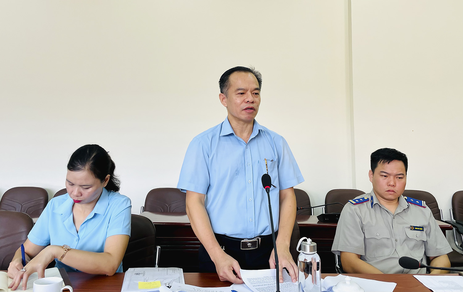 Bà Trần Thị Lan - Chi cục Trưởng Chi cục THADS thành phố báo cáo tại cuộc họp