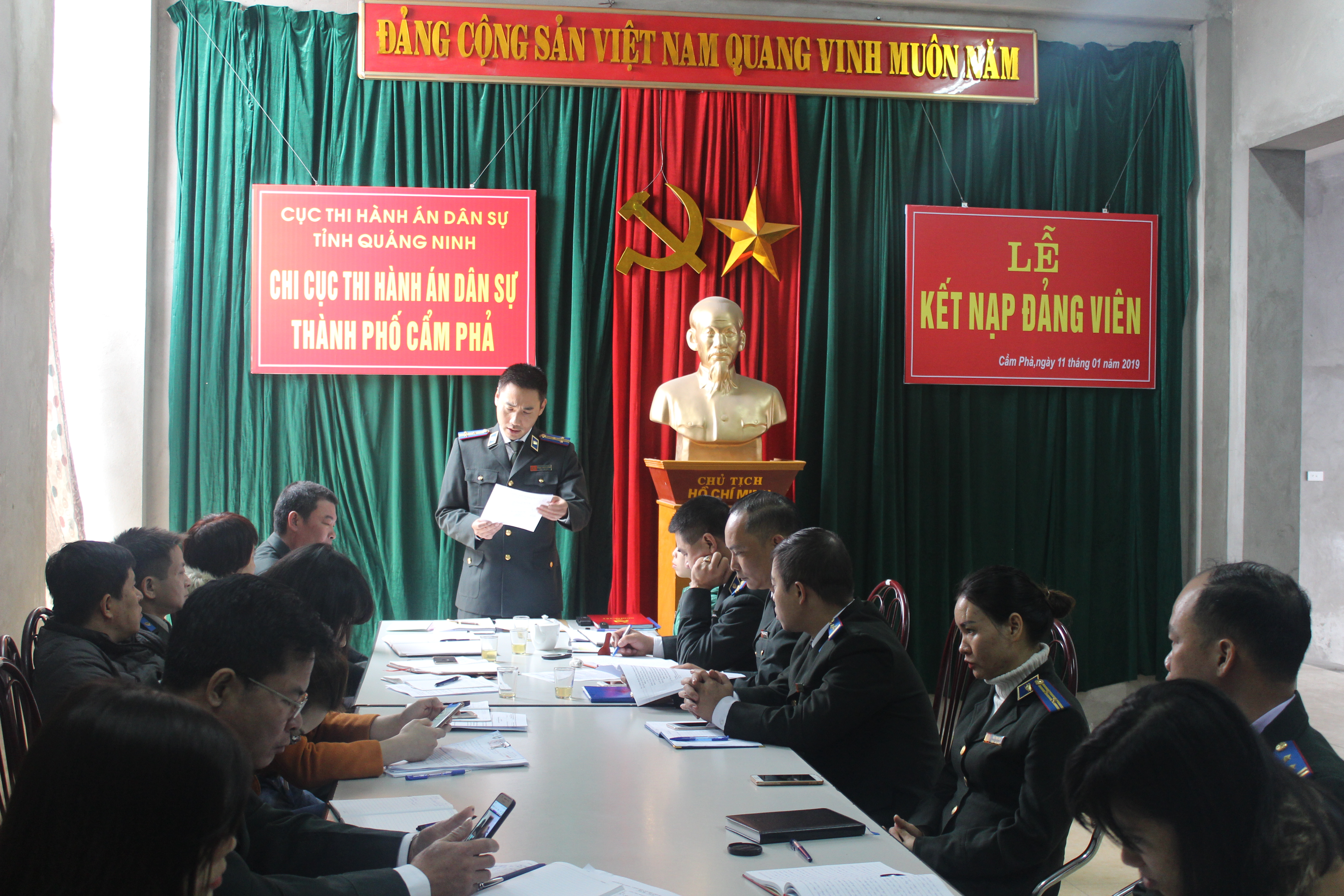 Thực hiện Quyết định kết nạp đảng viên số 751-QĐ/TU ngày 14/12/2018 của Thành ủy Cẩm Phả. Ngày 11/01/2018 Chi bộ Chi cục Thi hành án dân sự thành phố Cẩm Phả đã tổ chức kết nạp đảng viên cho quần chúng ưu tú là Trần Kim Dung chức vụ Hợp đồng 68 Chi cục Thi hành án dân sự thành phố Cẩm Phả. Đồng chí Trần Kim Dung trong thời gian sinh hoạt tại đơn vị được sự giúp đỡ của Chi bộ Chi cục luôn năng nổ, nhiệt tình, hoàn thành mọi nhiệm vụ được giao, tích cực tham gia các hoạt động của Công đoàn và Đoàn thanh niên Chi cục; có ý thức trách nhiệm, tư tưởng chính trị vững vàng; xứng đáng được đứng vào hàng ngũ của Đảng.