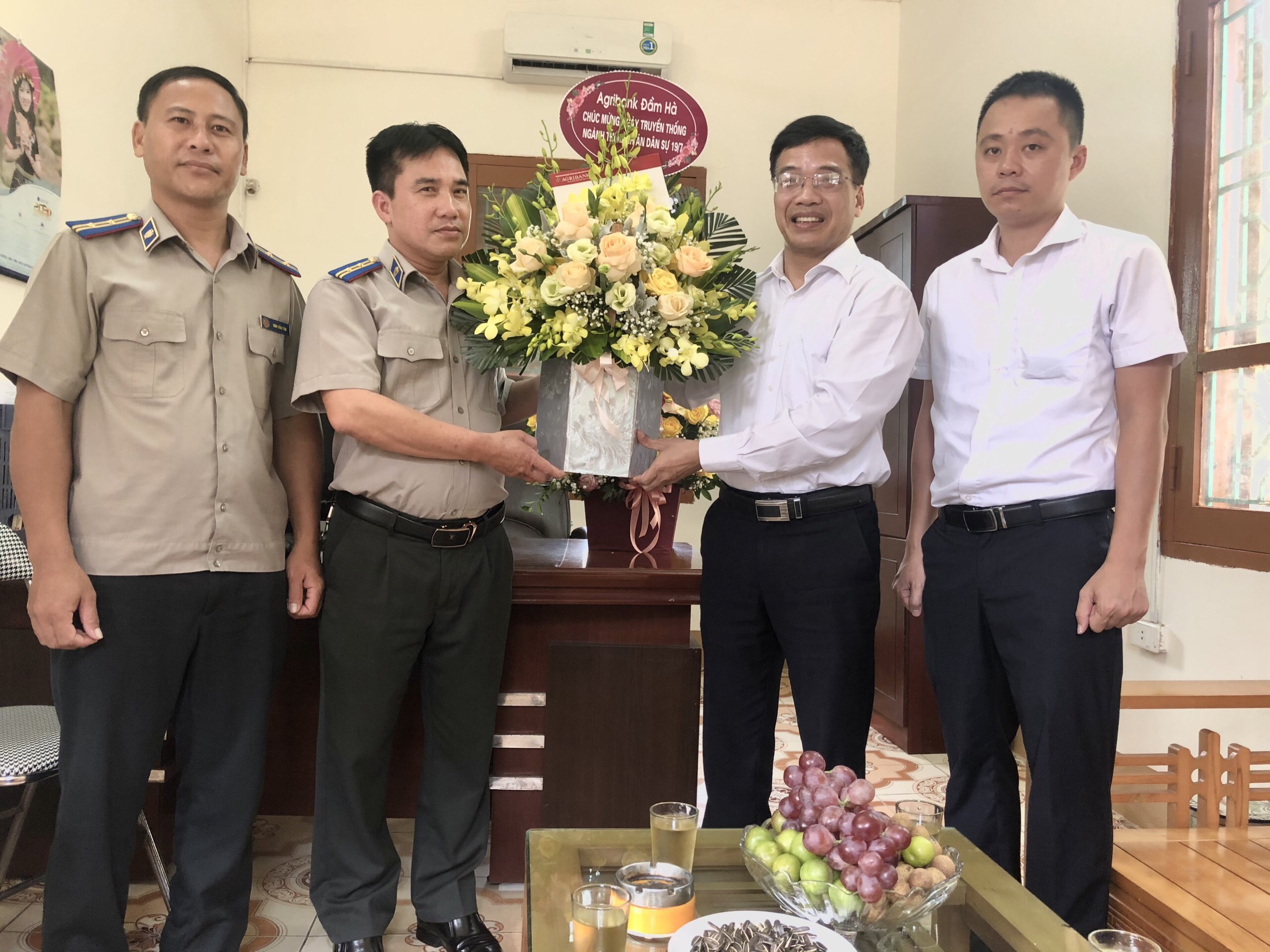 Cùng ngày các ngành của huyện đã đến tặng hoa chúc mừng kỷ niệm 75 năm ngày truyền thống Thi hành án dân sự (19/7/1946-19/7/2021).